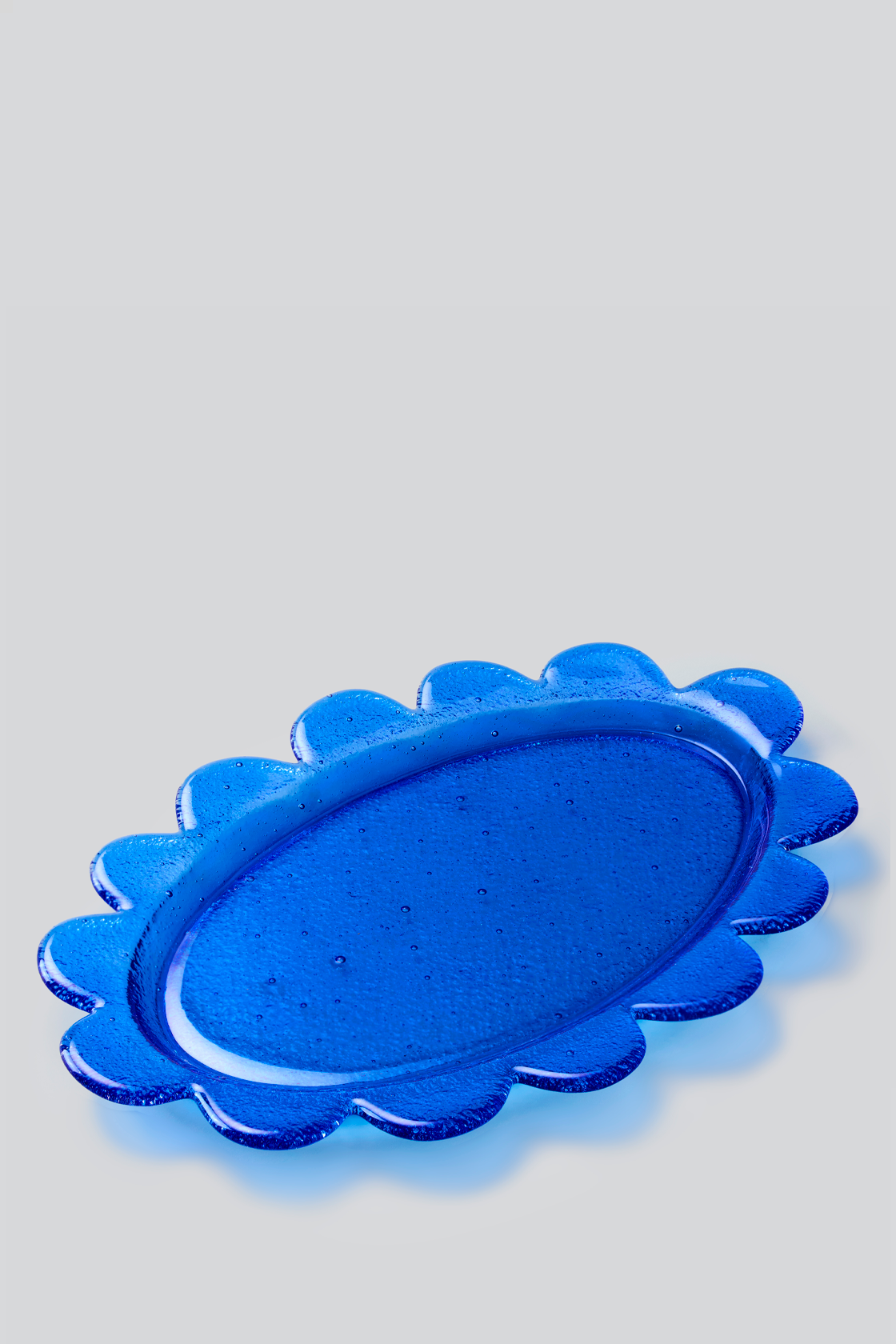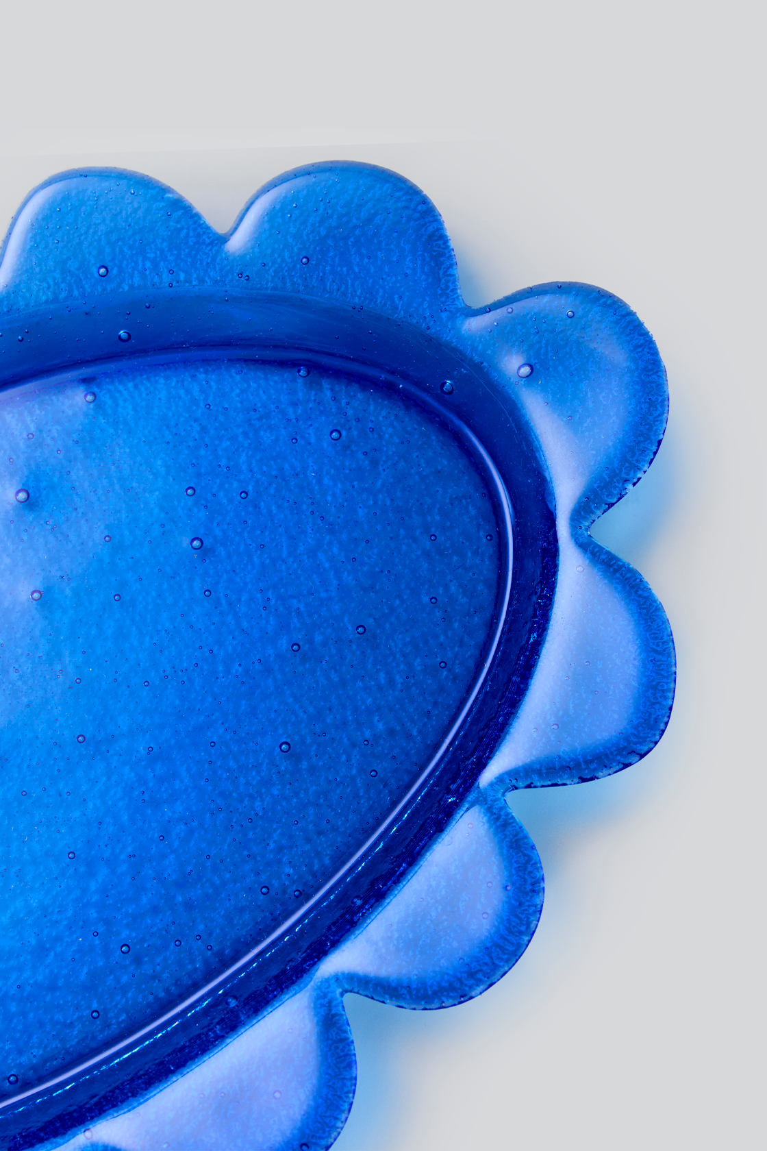 Этот предмет из направления Art&Craft. Блюда и тарелки становятся центром пространства, их формы отходят от ровных линий, вдохновляясь асимметрией живой природы. Каждый предмет имеет 3D-эффект благодаря спеканию двух слоев: непрозрачное белое стекло сочетается с прозрачным ярким, создавая эффект подсветки верхнего слоя.