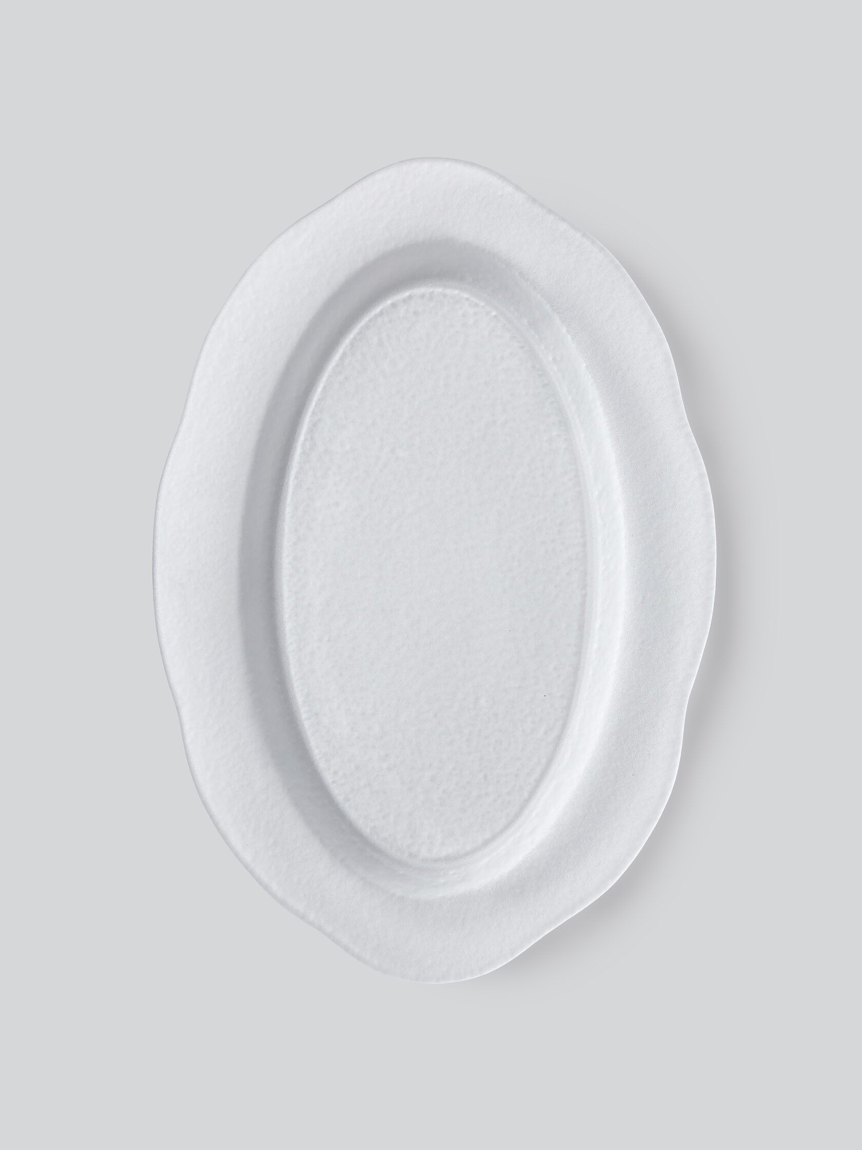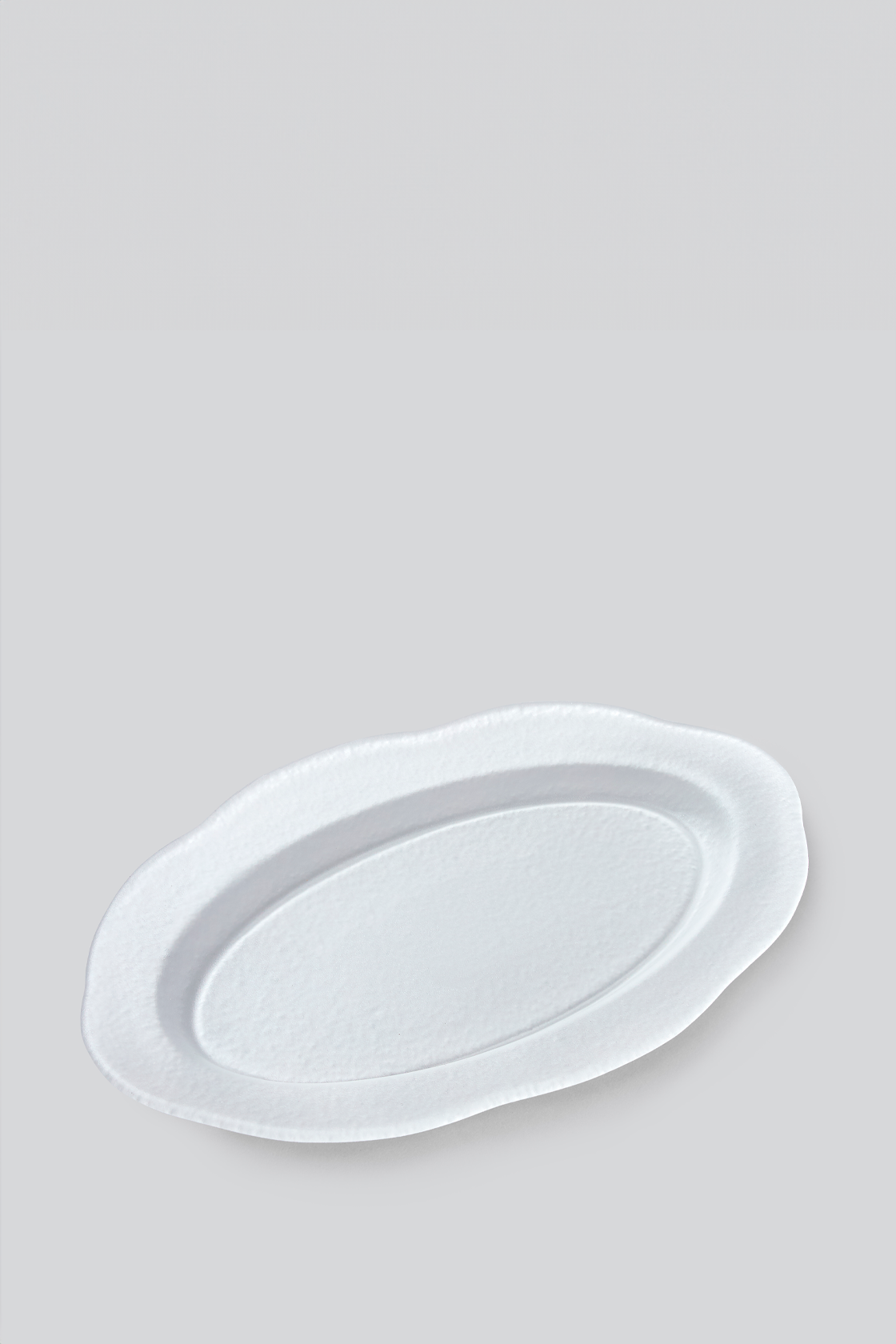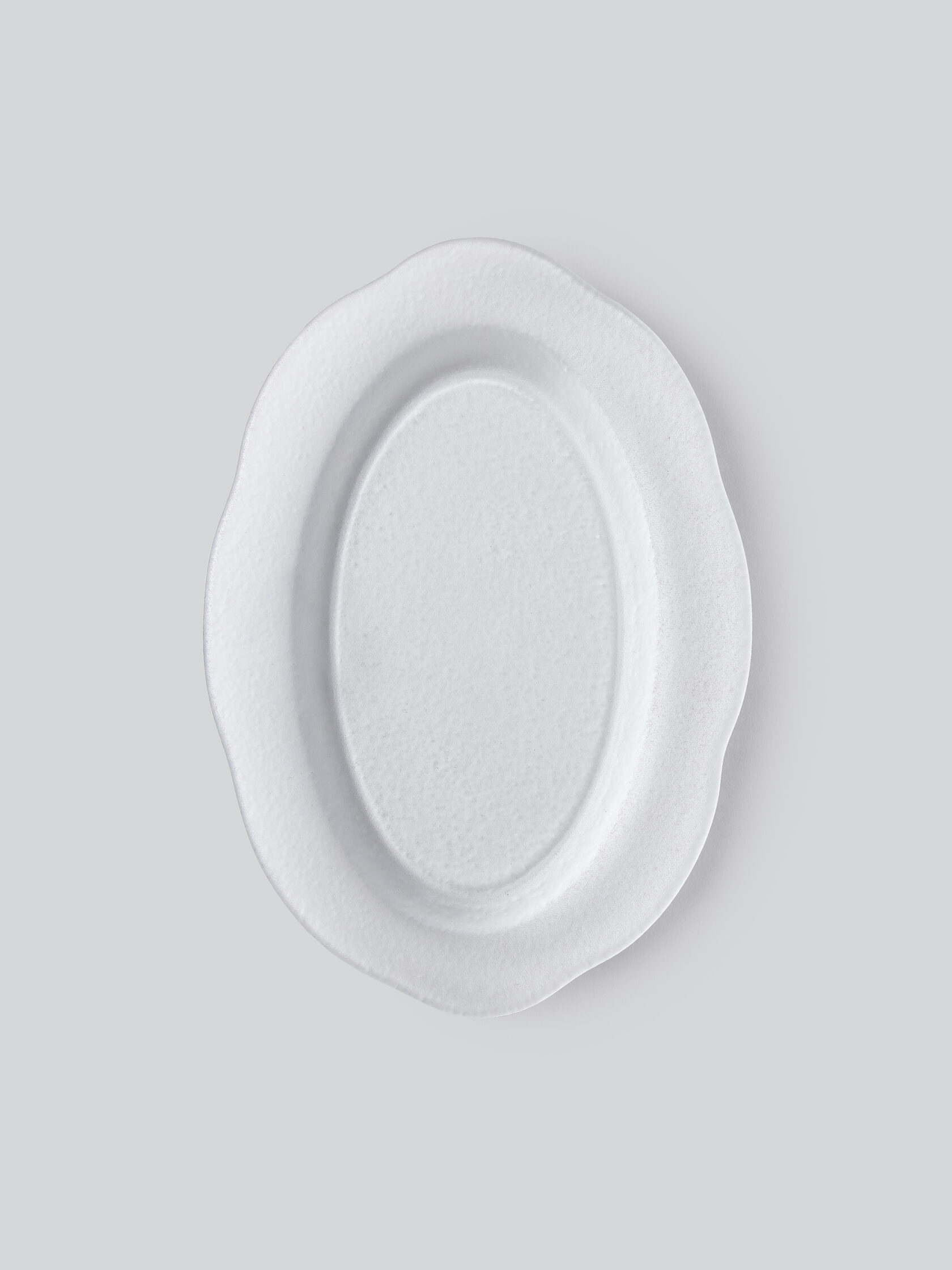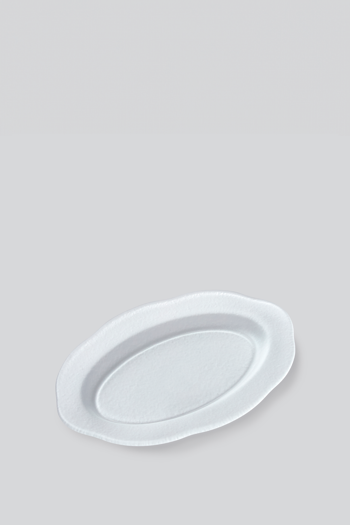 Коллекция Oval объединена универсальной формой, мягкой по линиям и выразительной по характеру. Спокойный ритм и внутренняя симметрия наших овалов созданы, чтобы придать элегантности сервировки стола. Матовая поверхность делает блюдо особенно сдержанным и спокойным. Она мягко рассеивает свет и усиливает тактильность формы. Рельефный край с рюшами добавляет декоративности и делает подачу выразительной.