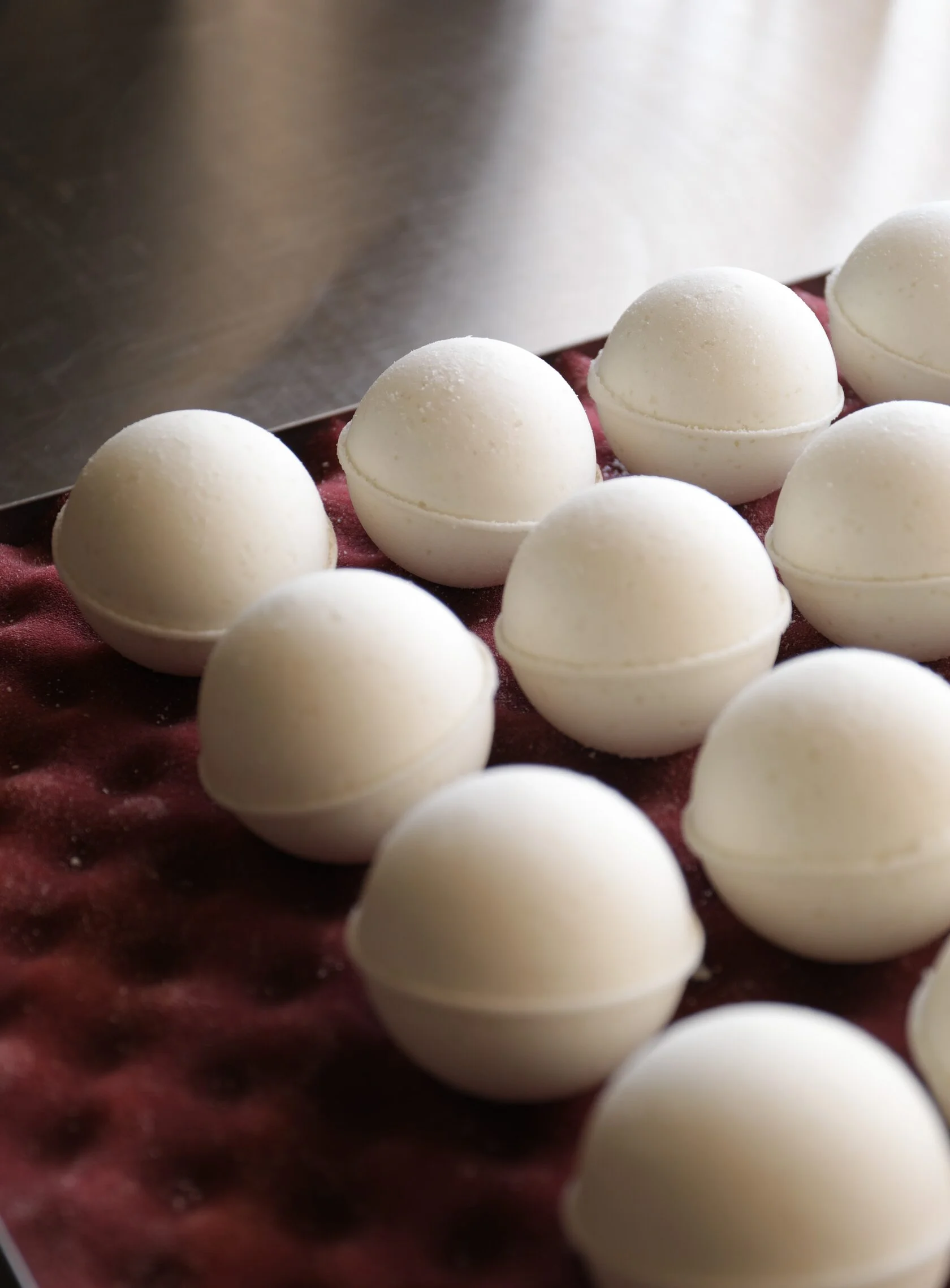 Мы разработали наши бомбочки, чтобы они доставляли удовольствие, добавили в них уходовые масла, которые превратятся в пышную пену, а затем придадут воде в ванной характеристики увлажняющего и пышного молока.