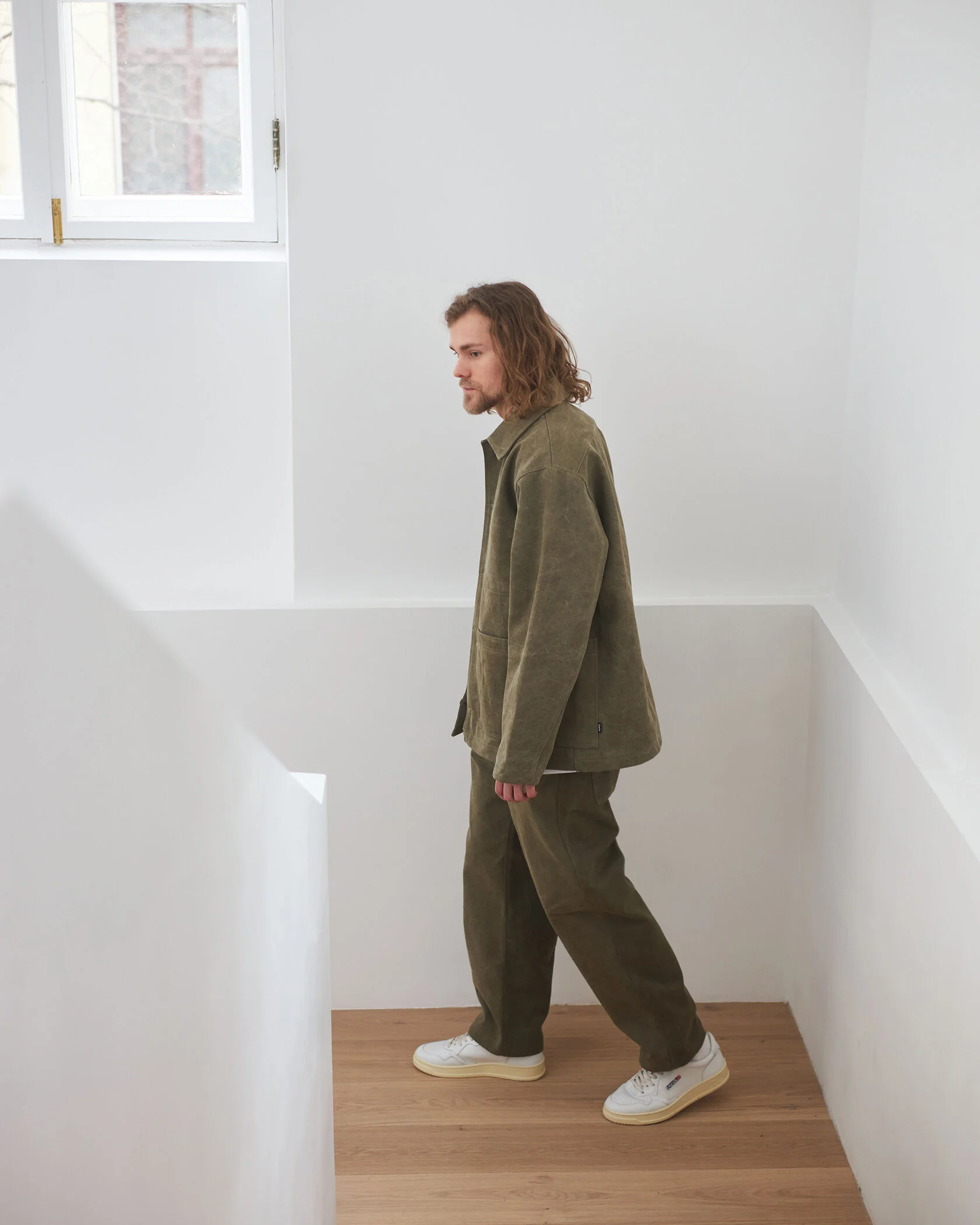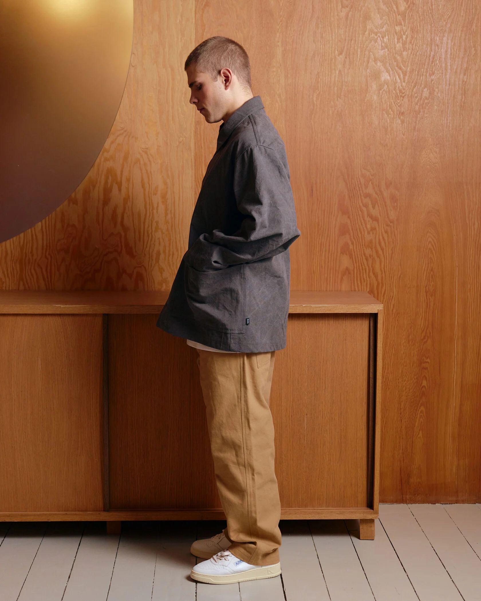 Куртки и брюки простых геометричных форм для улицы из хлопкового канваса.