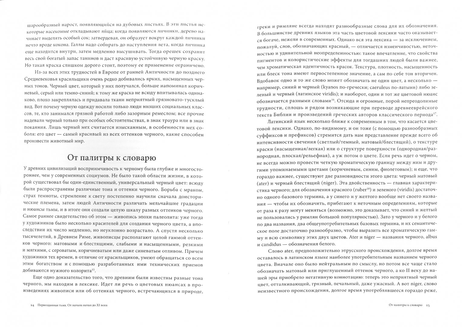 Данная монография является продолжением масштабного проекта французского историка Мишеля Пастуро — истории цвета в западноевропейских обществах, от Древнего Рима до XVIII века, начатого им с исследования отношений европейцев с синим цветом. На этот раз в центре внимания Пастуро один из самых загадочных и противоречивых цветов с весьма непростой судьбой — черный. Автор предпринимает настоящее детективное расследование приключений, а нередко и злоключений черного цвета в западноевропейской культуре. Цвет первозданной тьмы, Черной смерти и Черного рыцаря, в Средние века он перекочевал на одеяния монахов, вскоре стал доминировать в протестантском гардеробе, превратился в излюбленный цвет юристов и коммерсантов, в эпоху романтизма оказался неотъемлемым признаком меланхолических покровов, а позднее маркером элегантности и шика и одновременно непременным атрибутом повседневной жизни горожанина.