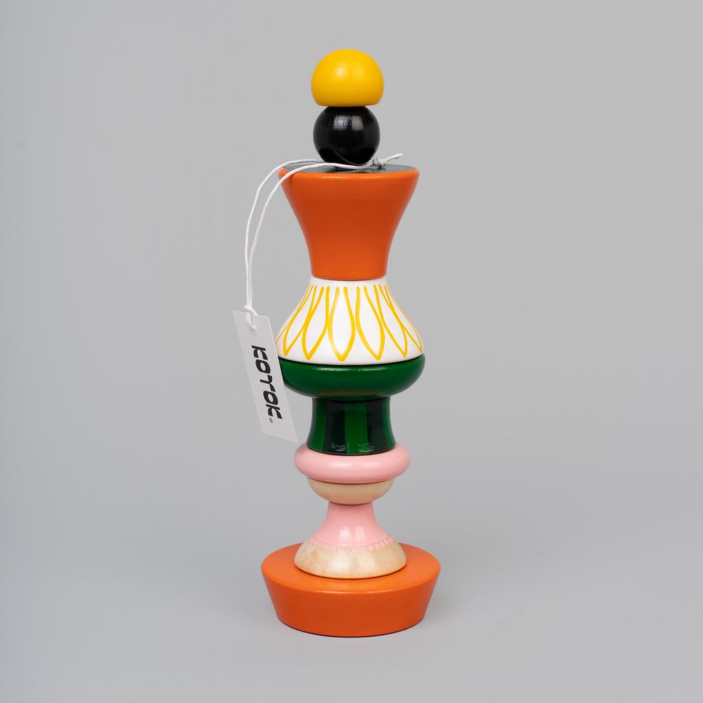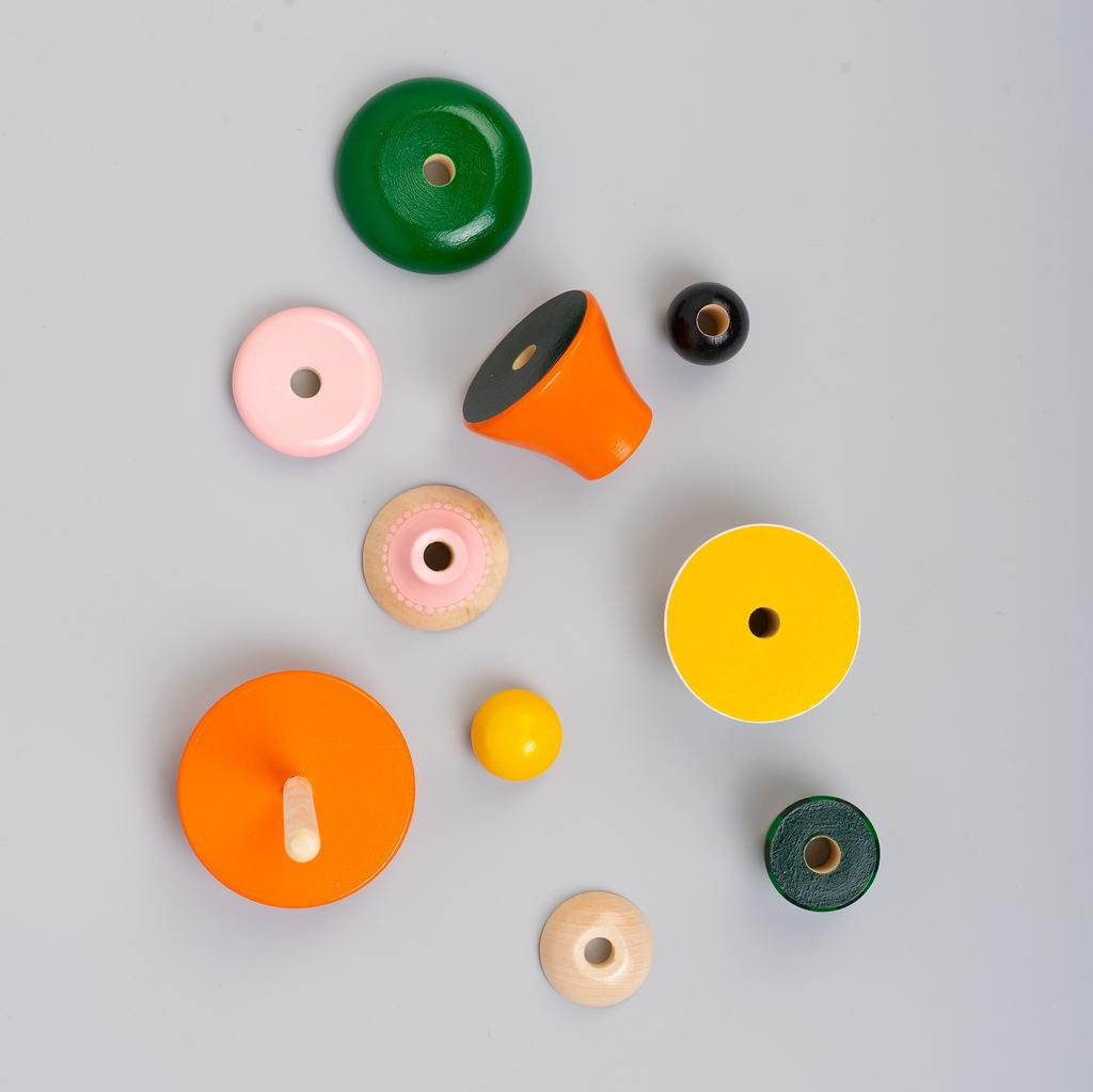 У наших пирамидок нет принципиально верного порядка сборки: мы считаем, что любая собранная композиция будет выглядеть интересно вне зависимости от расположения деталей на оси. Какая фигура получится – зависит только от воображения!