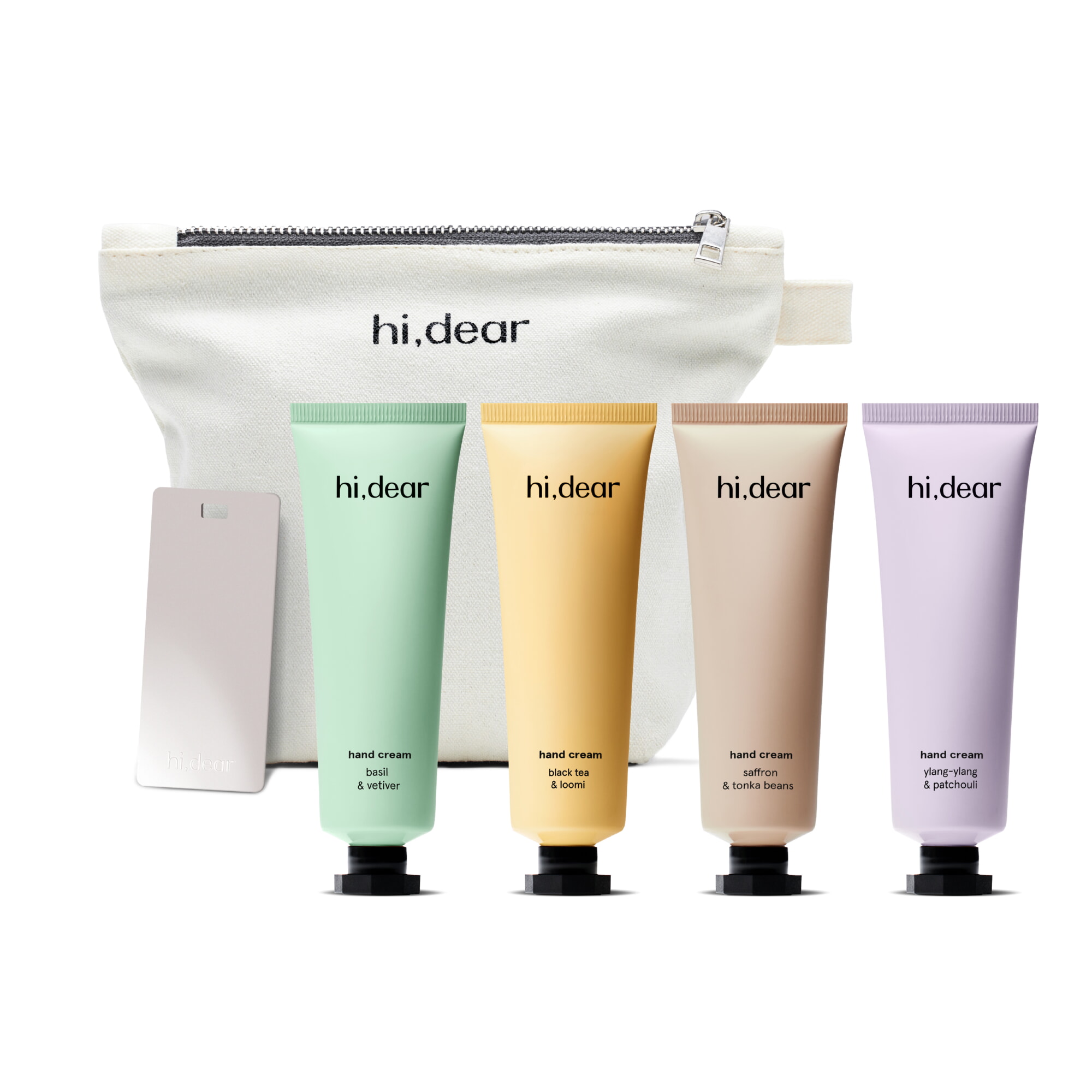 Кремы удобно упакованы в косметичку из натурального льна и хлопка с прочным замком и крючком для подвешивания. Практичный и стильный аксессуар, который станет незаменимым спутником твоего ухода.