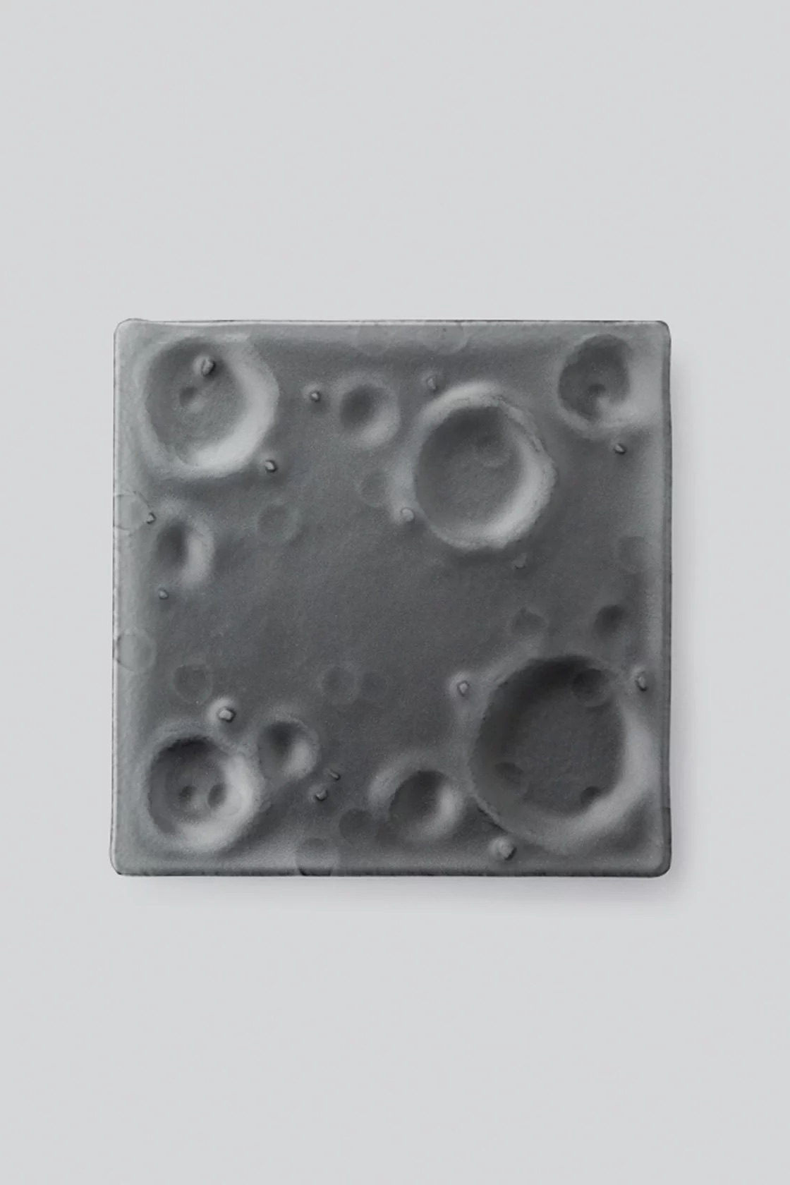 Квадратная тарелка с углублениями, немного поднятые края, матовая поверхность.
