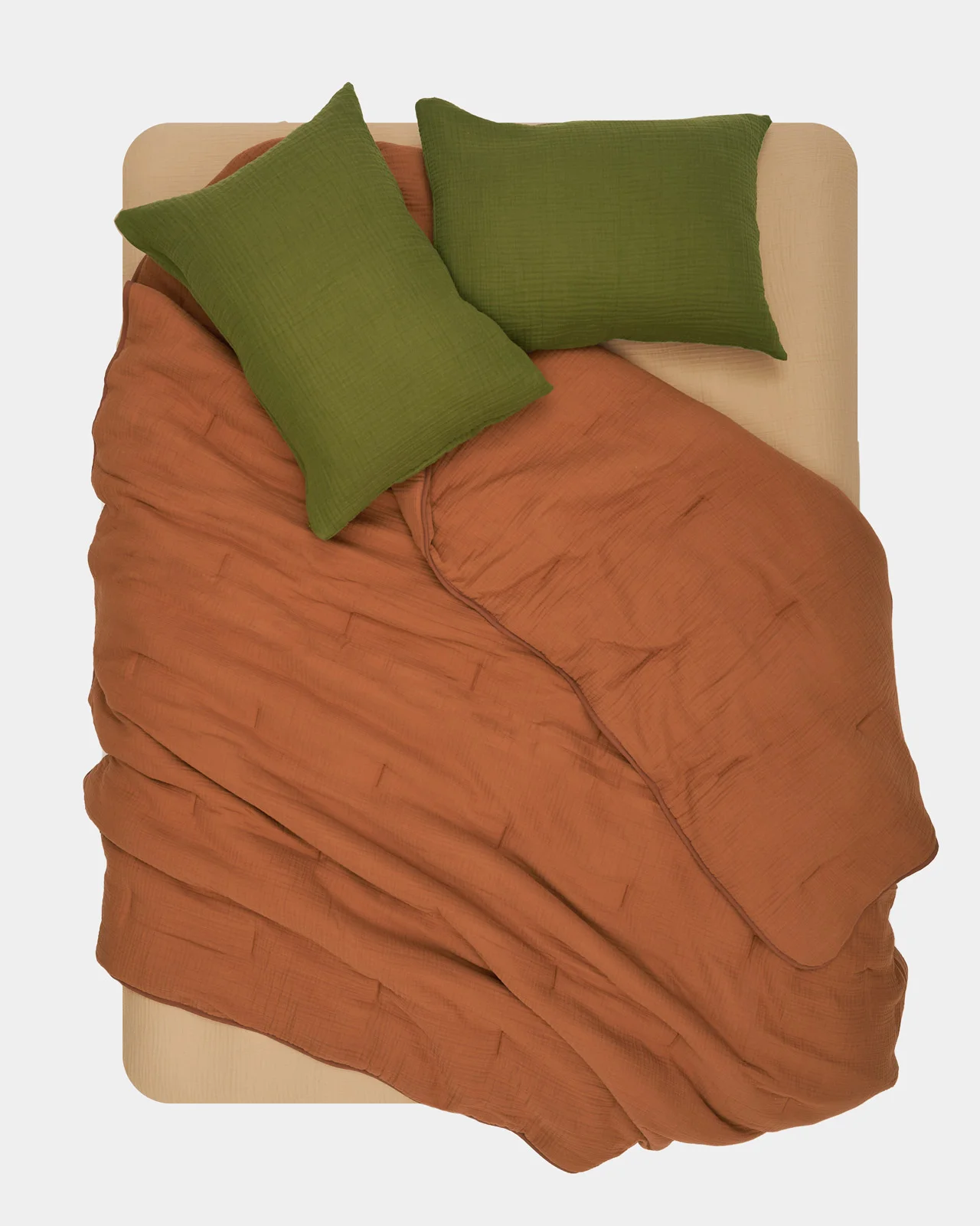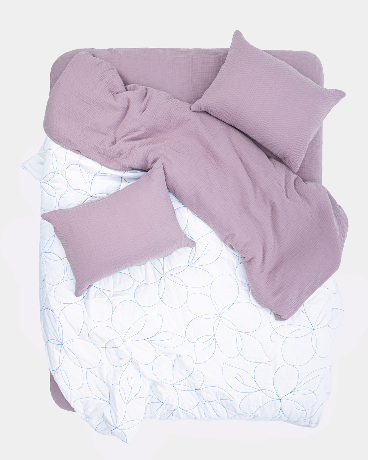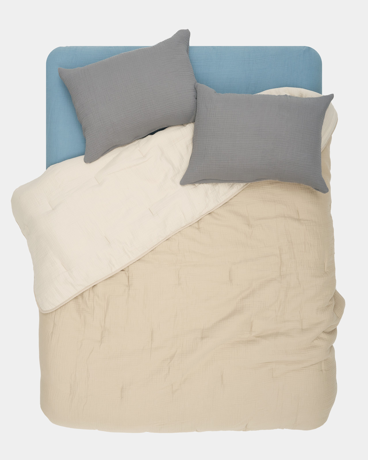 Для наших простыней мы используем плотный четырехслойный муслин: он нежнее, теплее и структурнее. Благодаря особому переплетению нитей муслиновая ткань деликатно согревает без ощущения духоты.