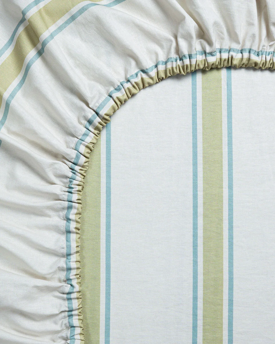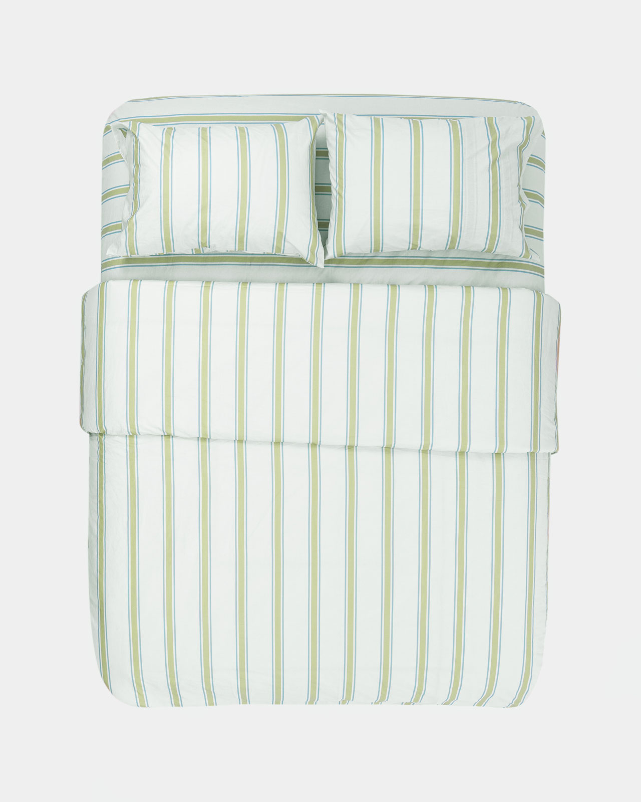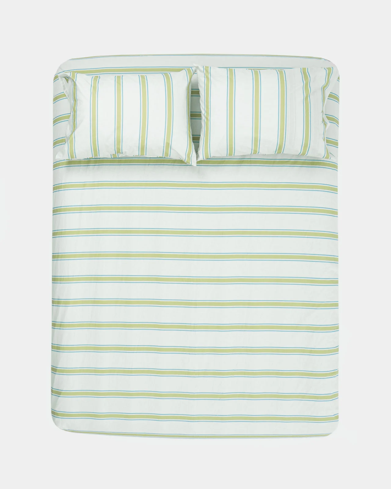 Главная страница / Каталог / Текстиль / Натяжная простыня из вареного хлопка в зеленую полоску