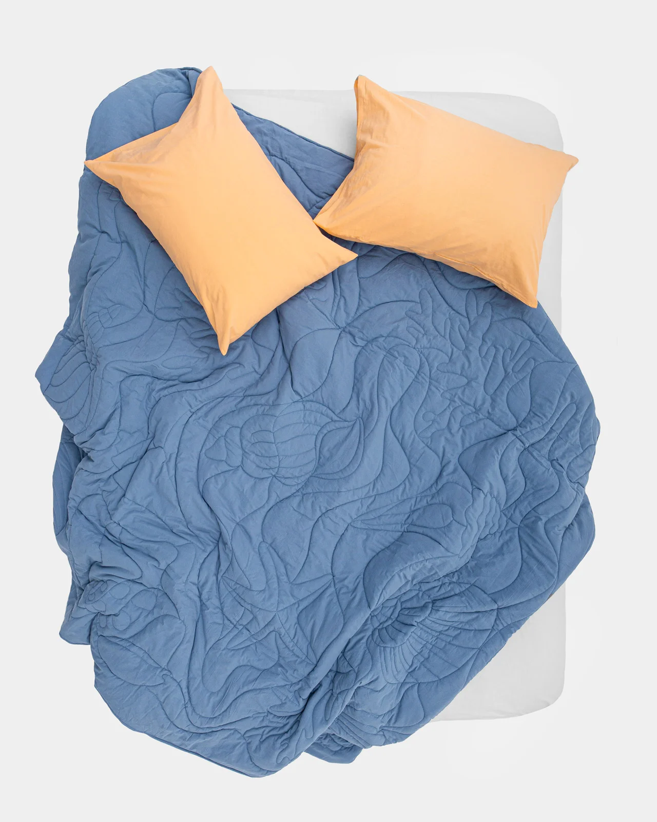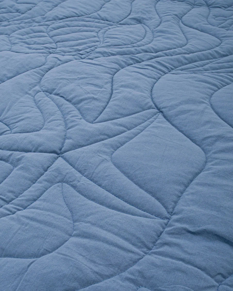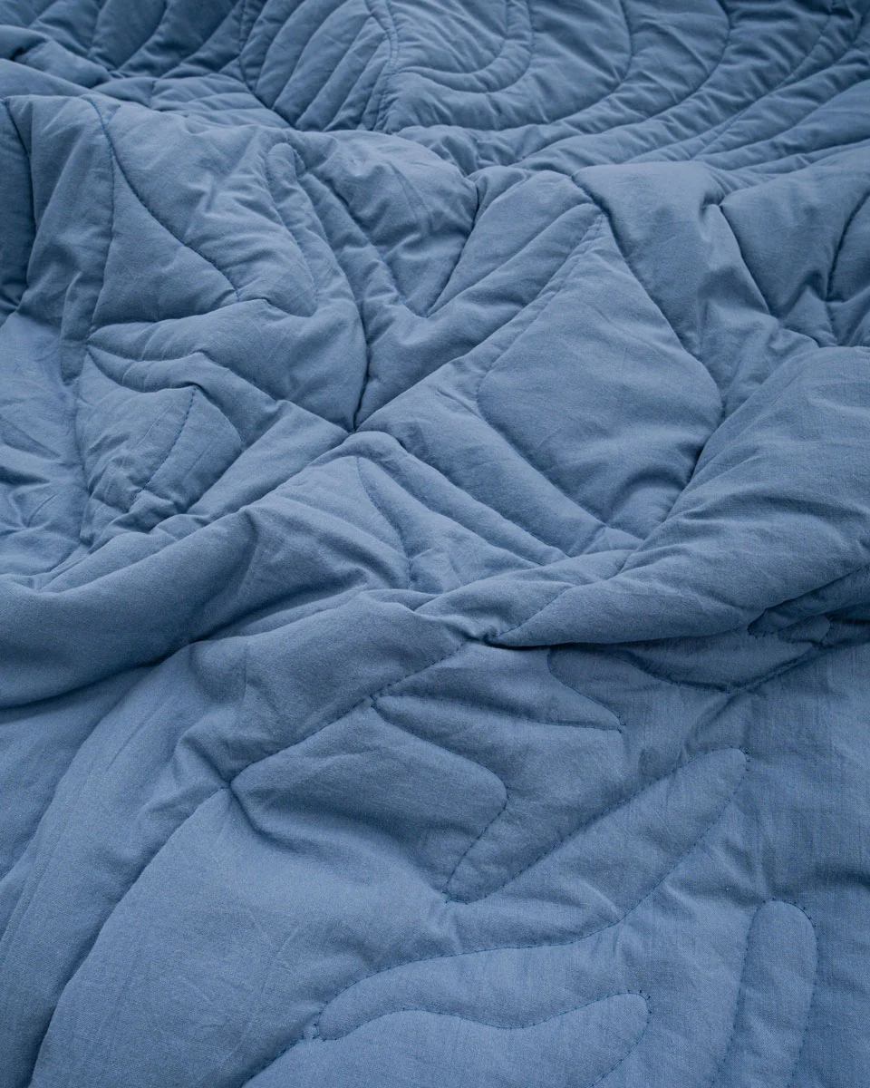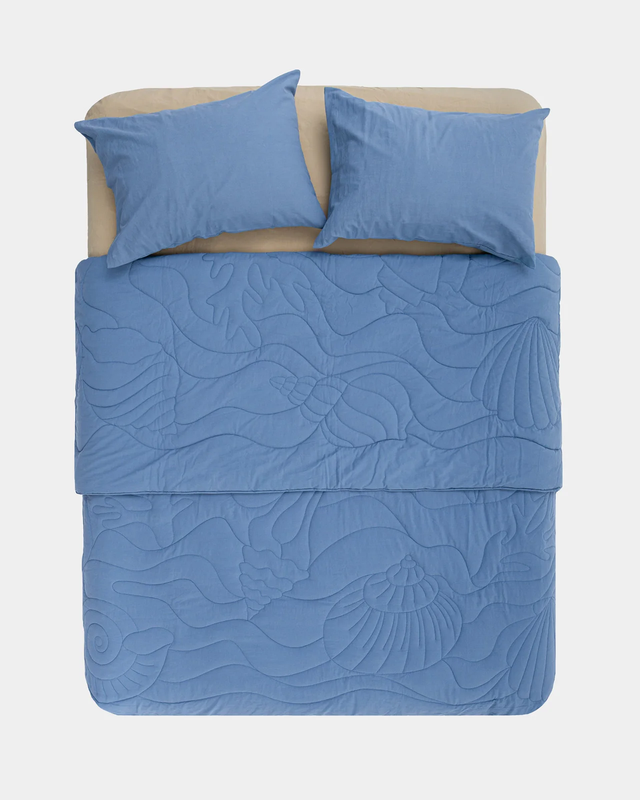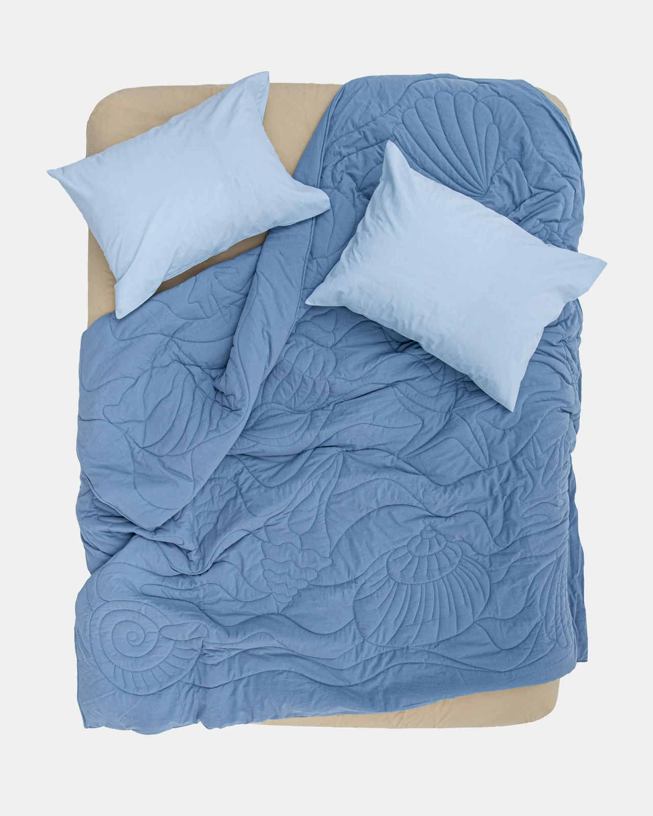 Напитанный солнцем и солью воздух, убаюкивающий шум волн, сотни оттенков синего и свежесть воды — образ, который мы взяли в основу для одеяла «Море».