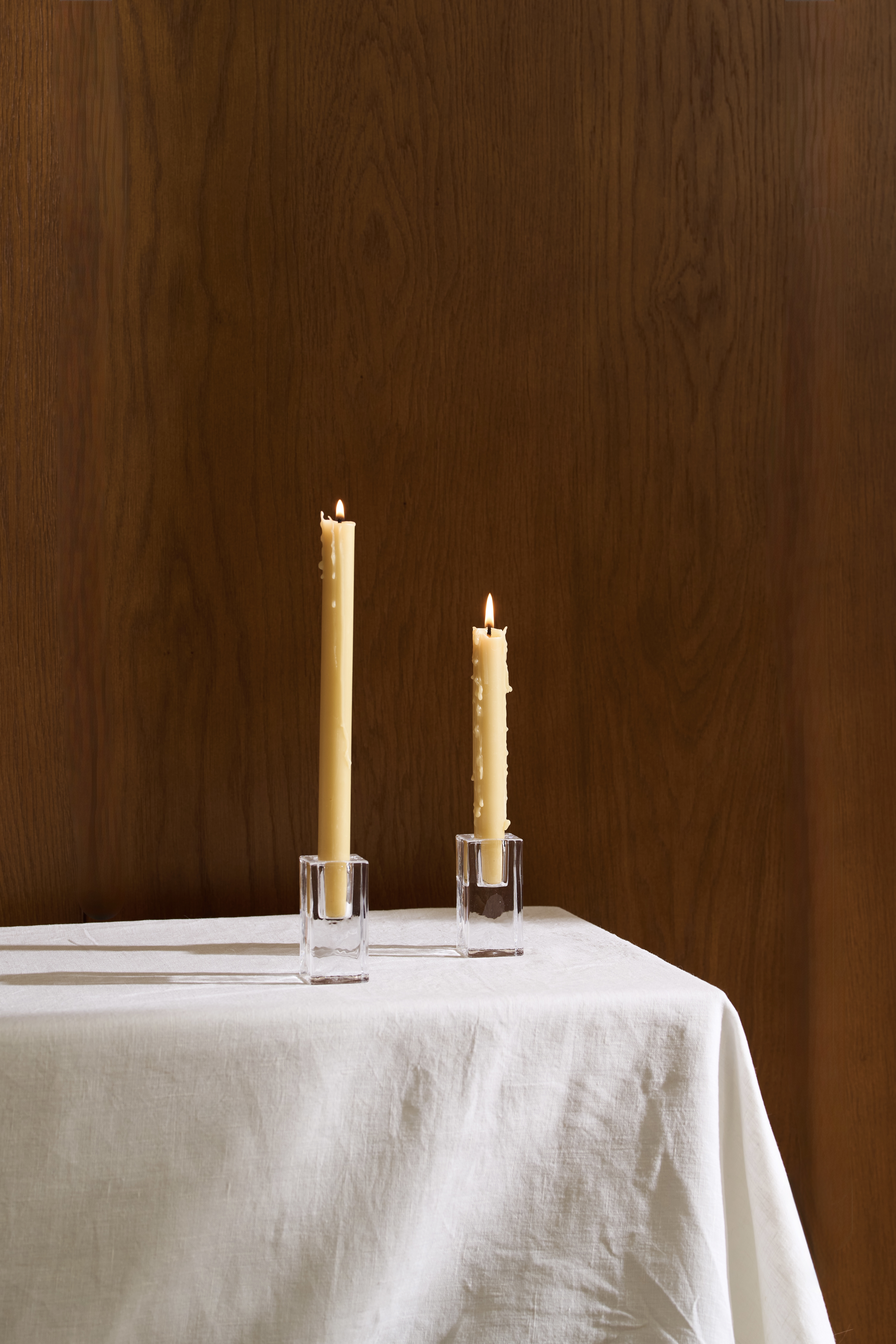 Форма лаконичная: ровные грани, срезанный верх, цилиндрическое углубление для свечи.