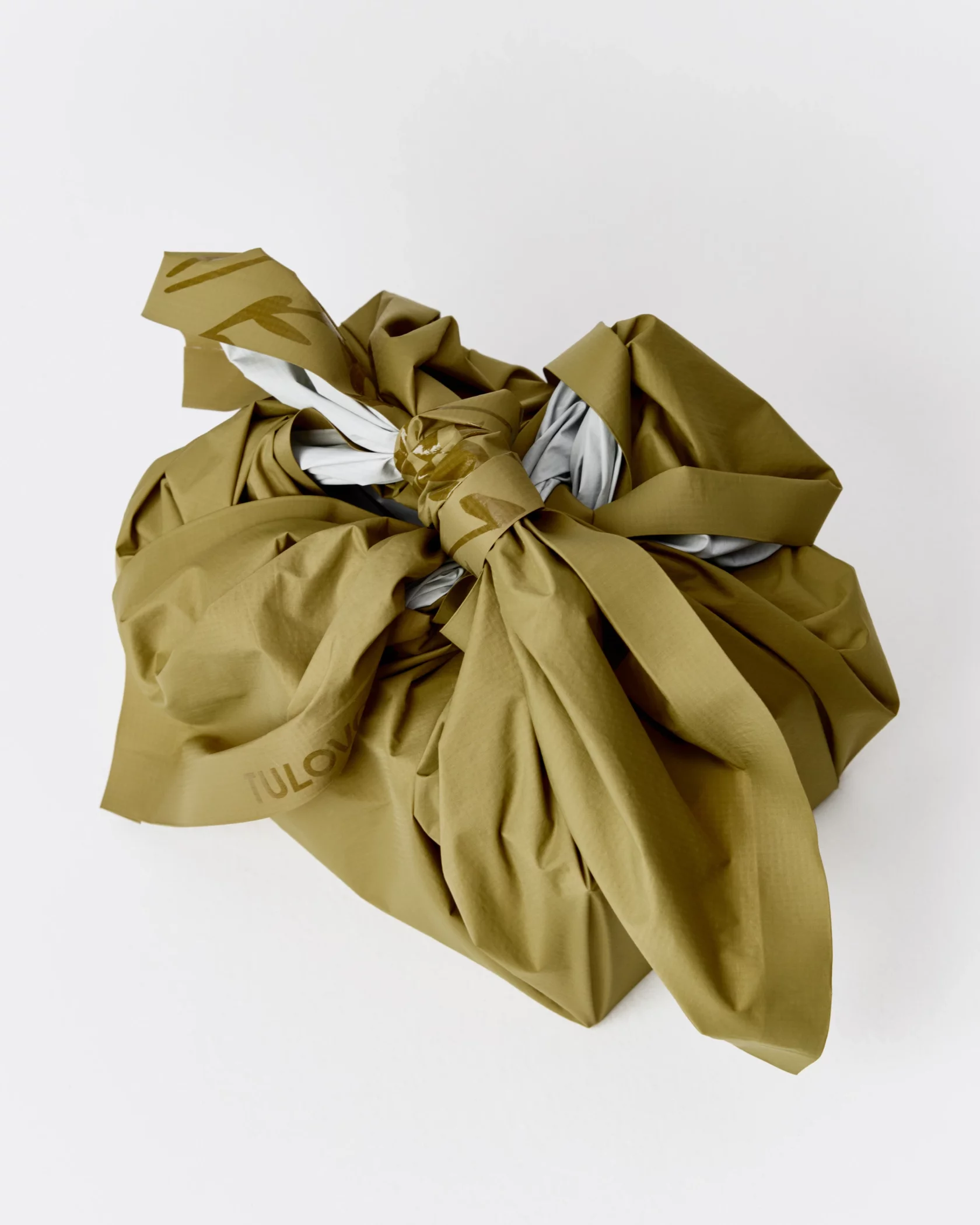 Платок можно сделать поясной сумкой, если сложить вещи в противоположные от центра углы и завернуть всё пополам.