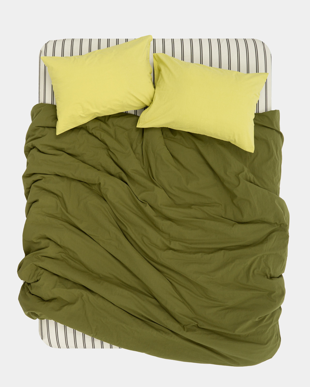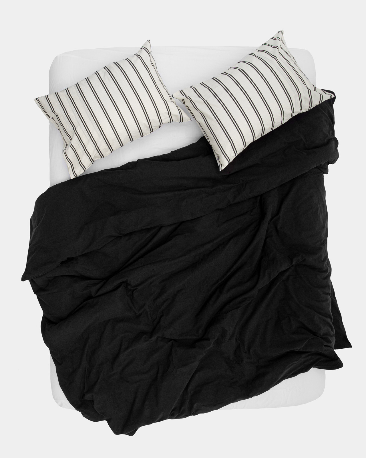 Пододеяльник из вареного хлопка закрывается на аккуратную потайную молнию.