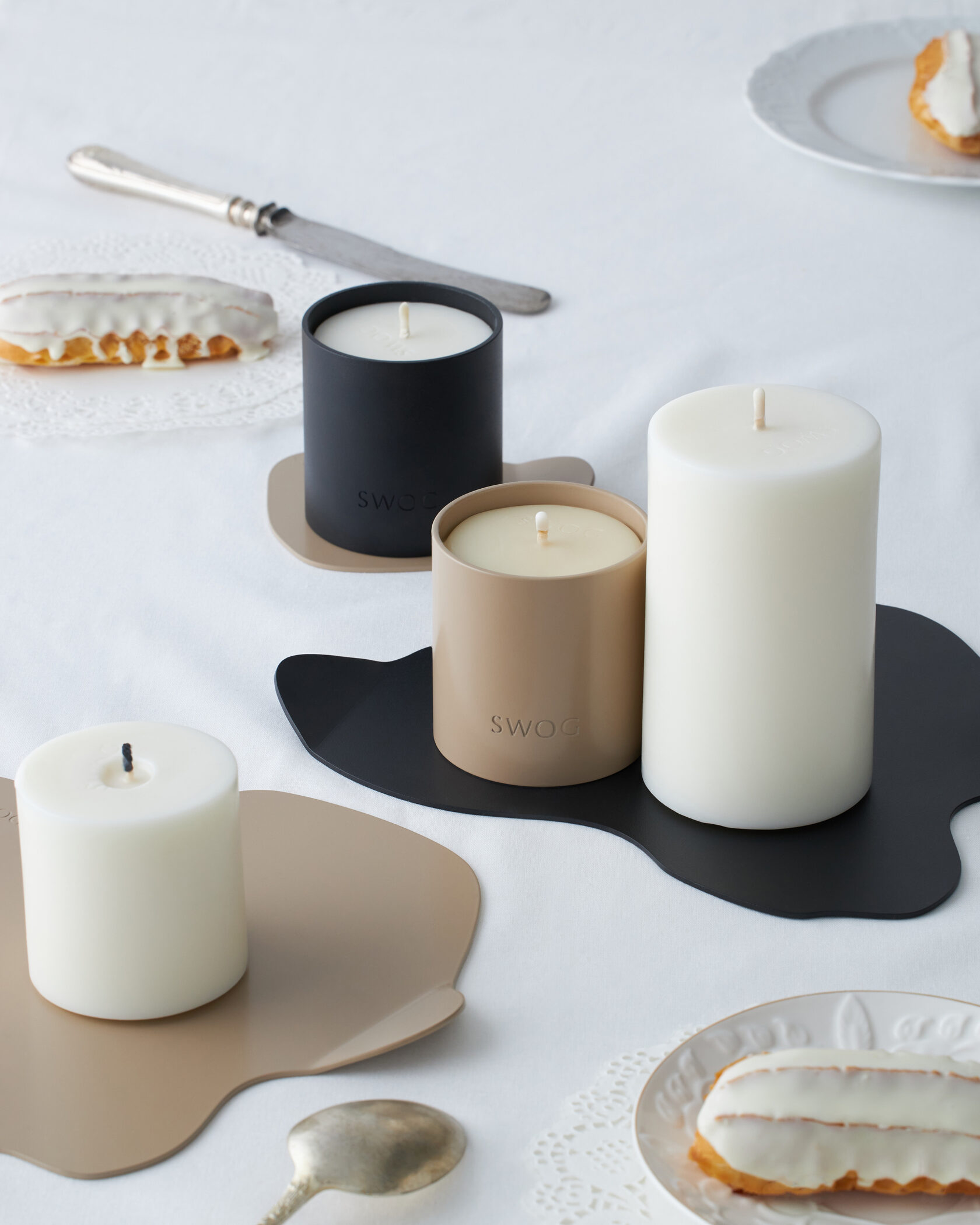 Вдохновением для новой коллекции SWOG living стал случайно застывший воск от свечи во время рабочего процесса, который принял форму овальных вытянутых форм. Незатейливым методом дальнейшего формообразования мы получили несколько основных фигур, которые стали полноценной коллекцией подставок под свечи.