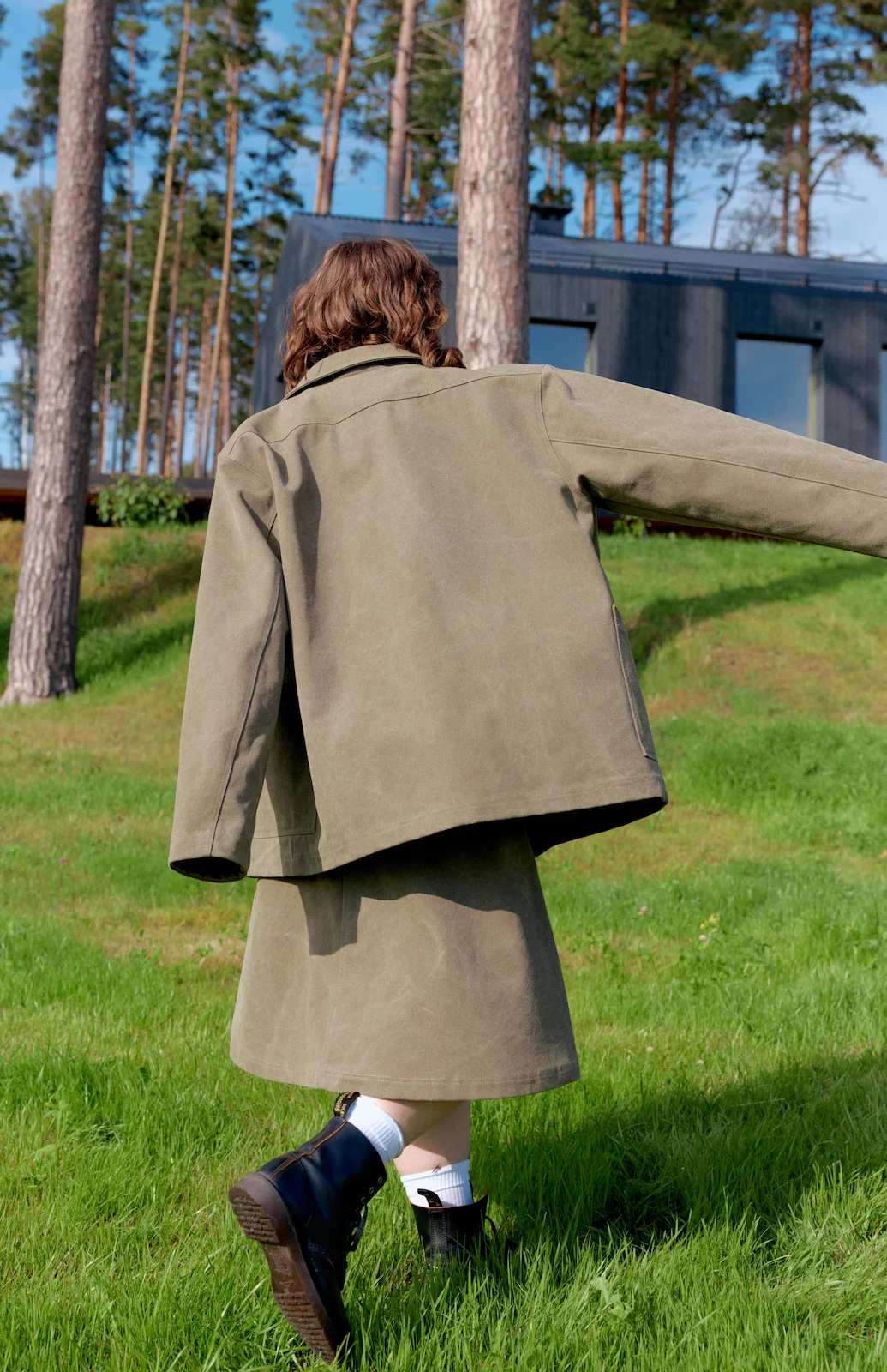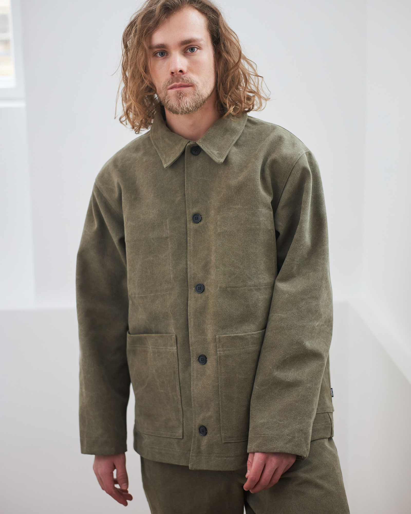 Куртки и брюки простых геометричных форм для улицы из хлопкового канваса.