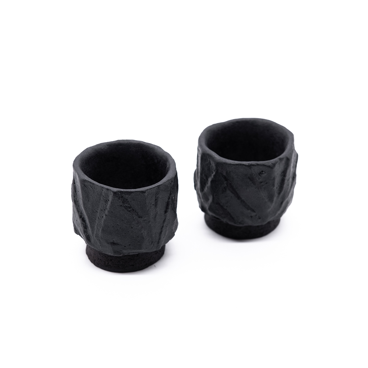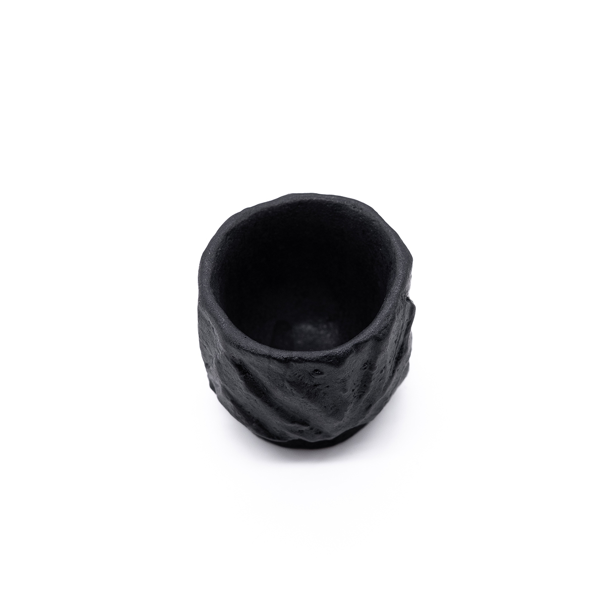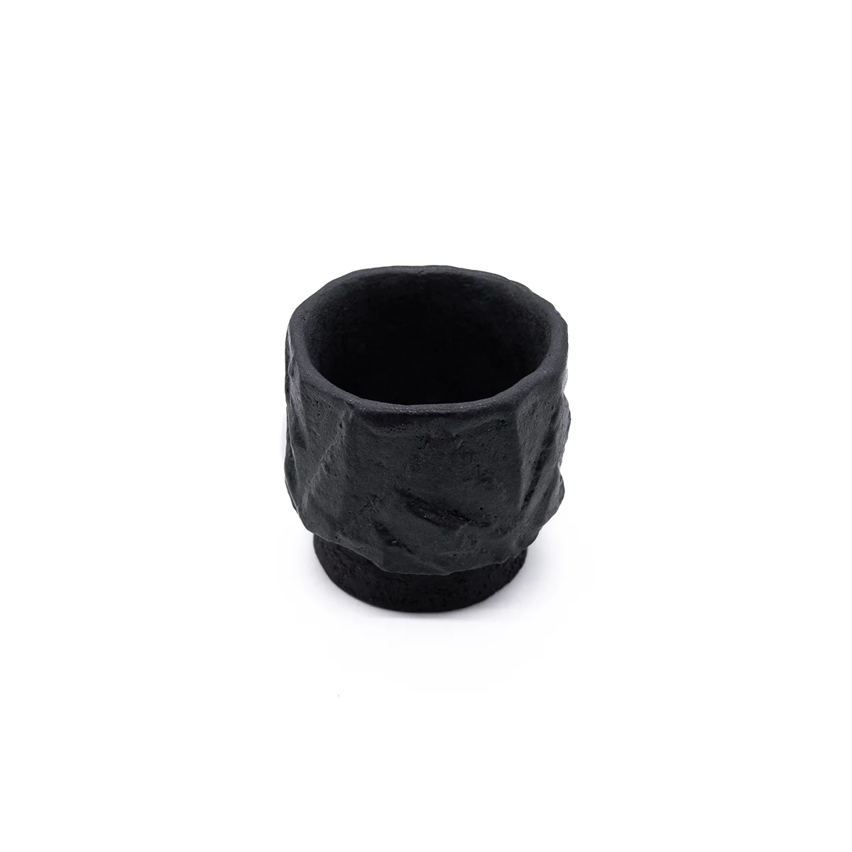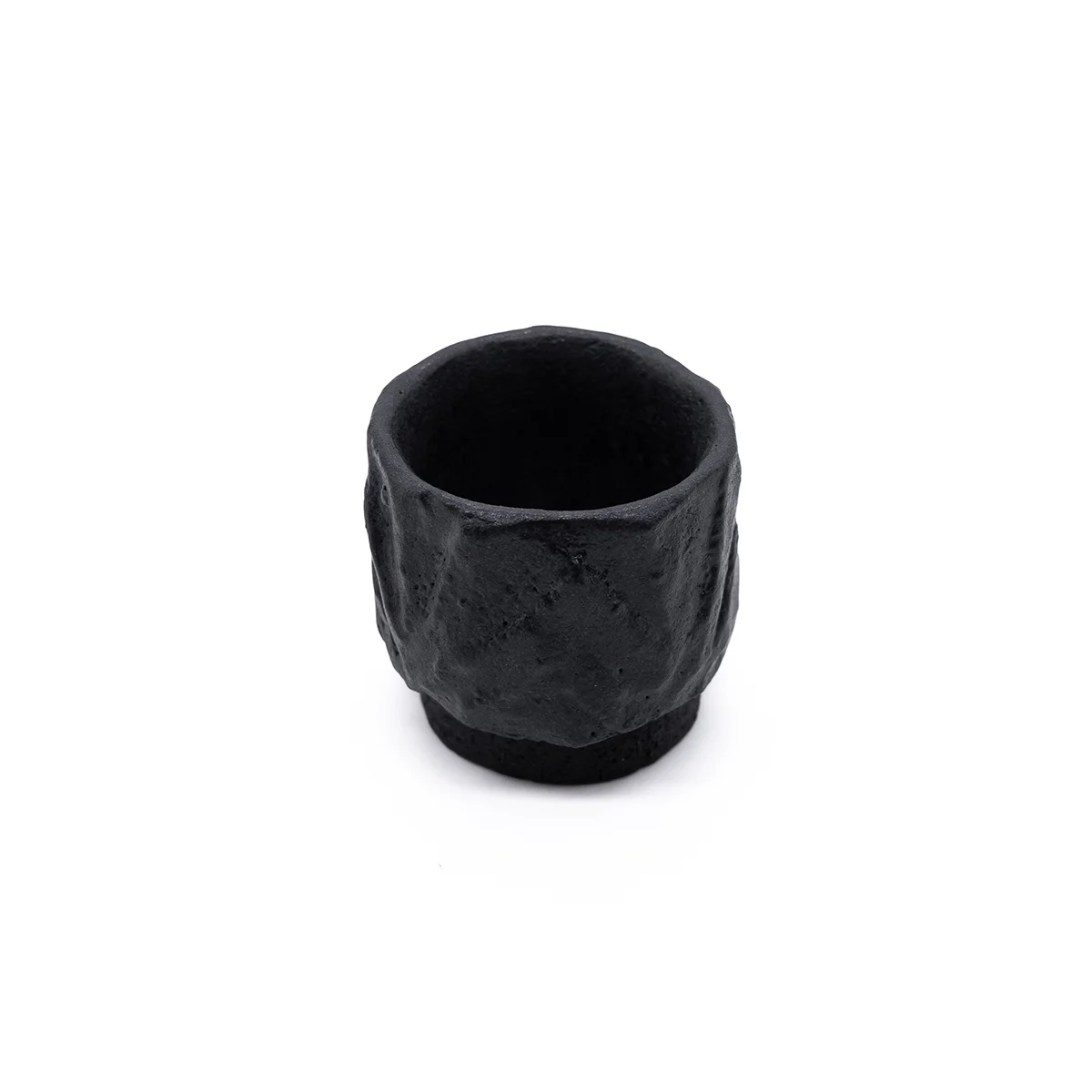 Эта чашка вырезана вручную из цельного блока глины и покрыта черной глазурью. Может быть использована для напитков.