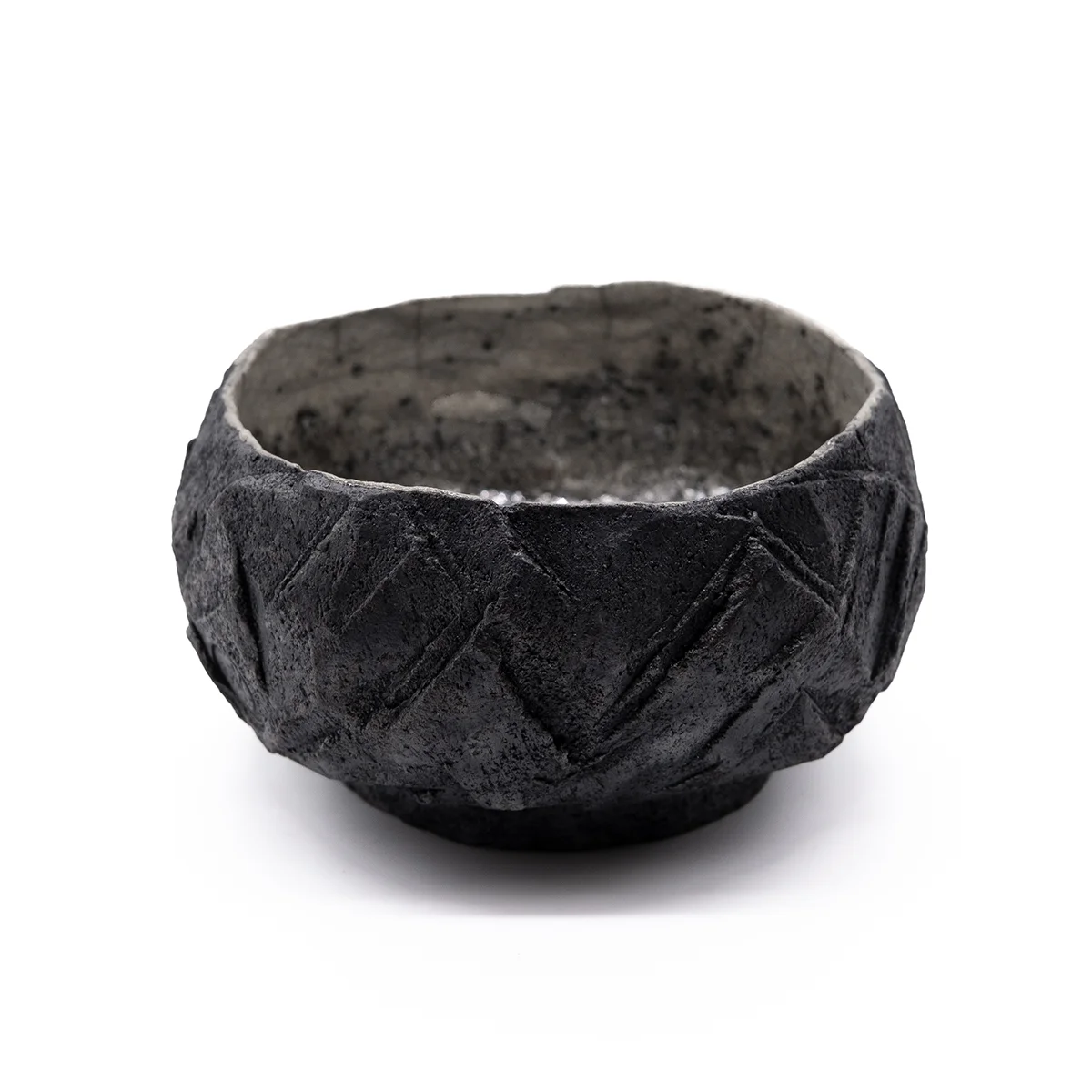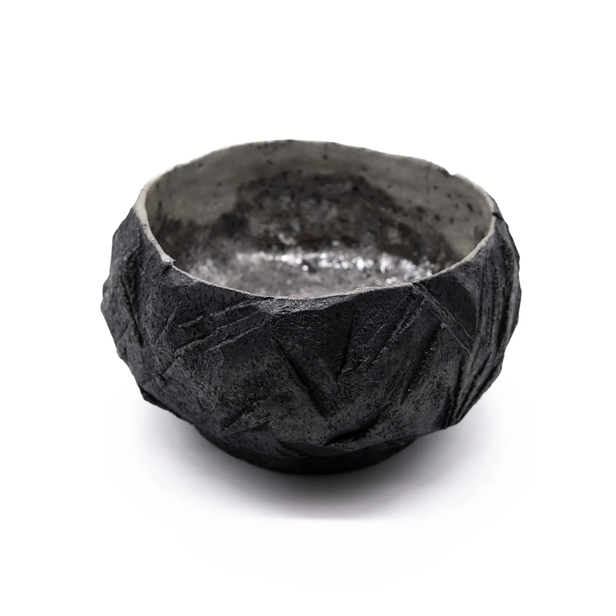 Этот боул вырезан вручную из цельного блока глины и обожжён методом раку. Полностью покрыт глазурью, может быть использован для напитков и еды.