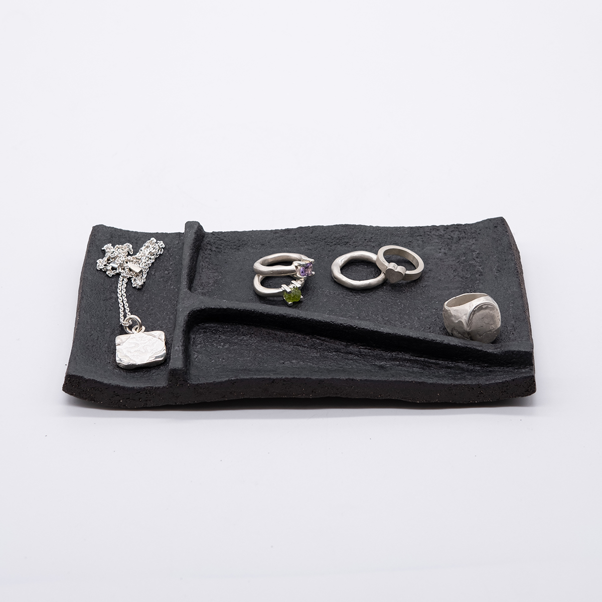 Эта тарелка вырезана вручную из цельного блока глины. Тарелка покрыта глазурью и может быть использована для еды, а также для хранения украшений и аксессуаров.