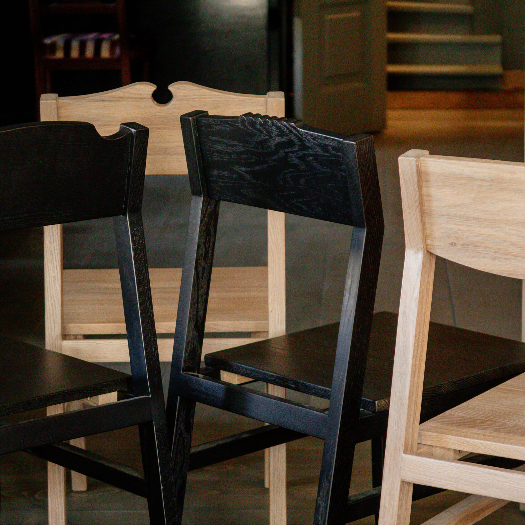 Спинка стула ФОРМА представлена в пяти вариантах оформления, которые сделаны по мотивам дореволюционных деревенских стульев. Стулья задумывались комплектом, но также хороши и по отдельности.