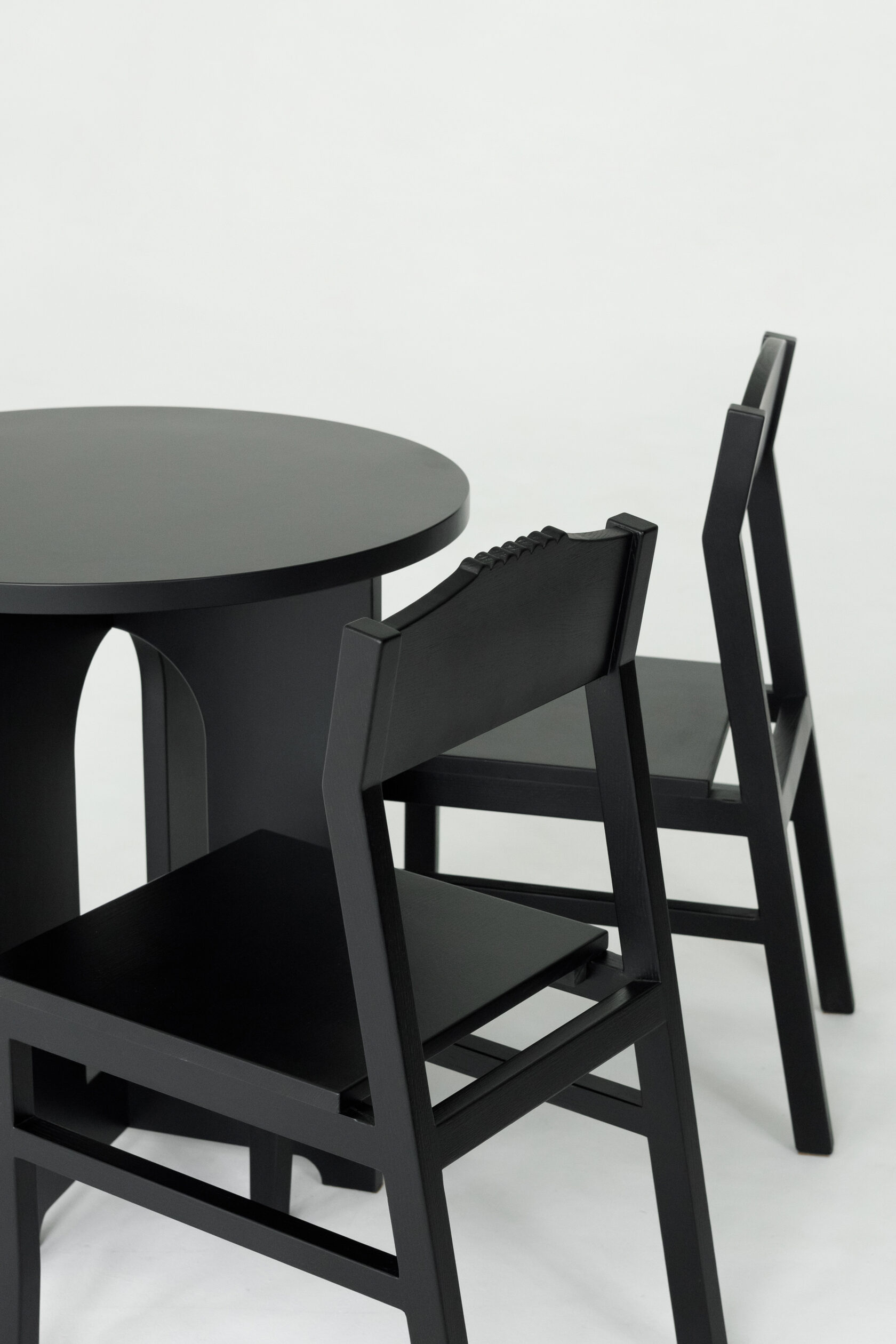 Спинка стула ФОРМА представлена в пяти вариантах оформления, которые сделаны по мотивам дореволюционных деревенских стульев. Стулья задумывались комплектом, но также хороши и по отдельности.
