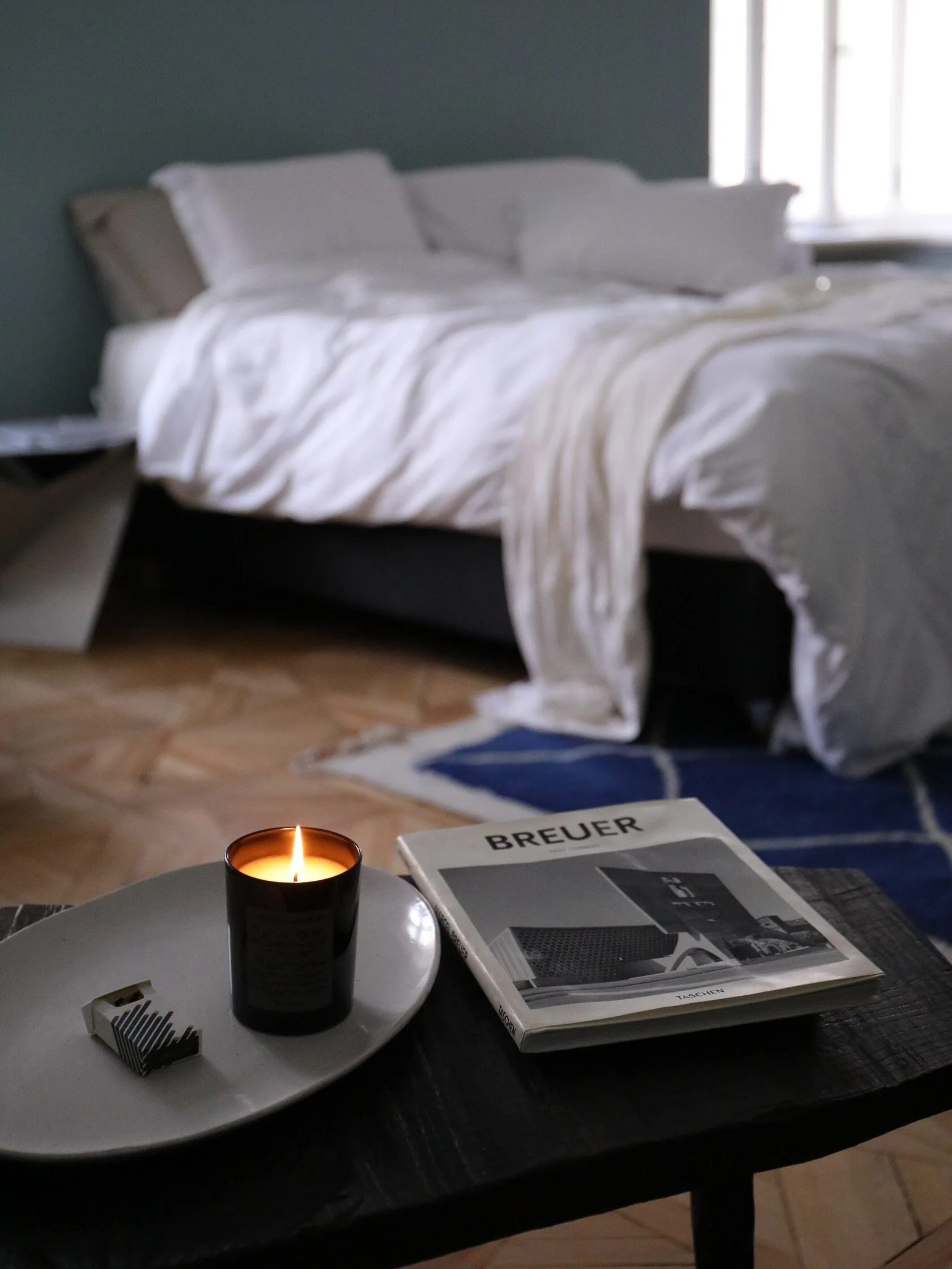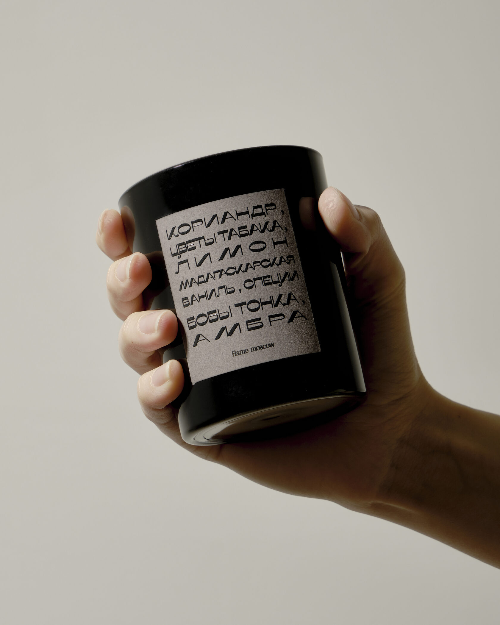 Свеча залита в глянцевое черное стекло и упакована в аккуратный тубус.