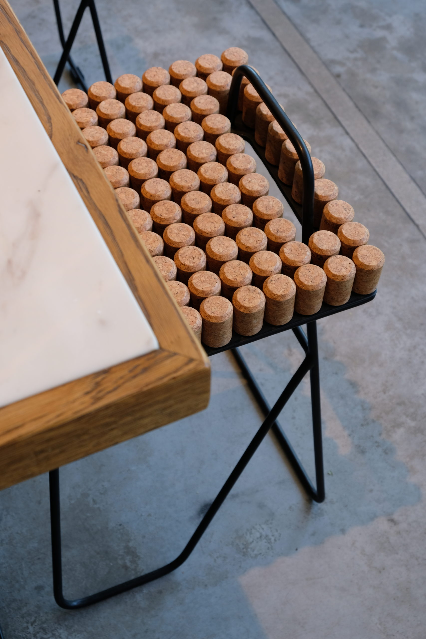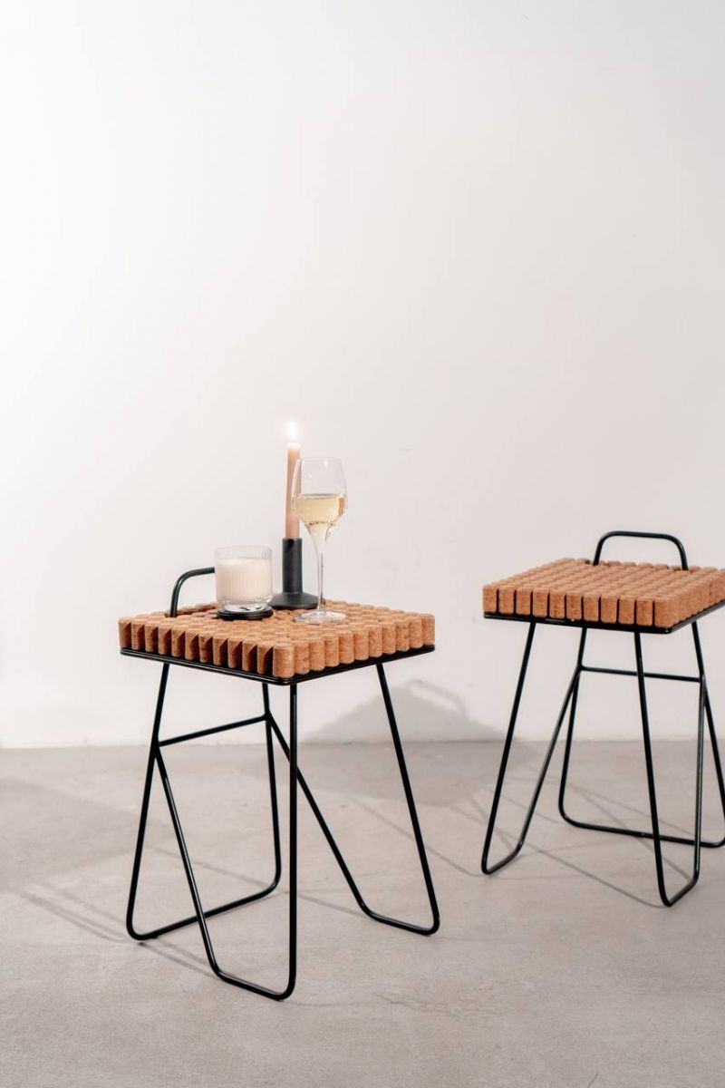 Табурет — столик CORK – это уникальное сочетание материалов, формы и функциональности. Особое внимание привлекают винные пробки, на которых очень удобно сидеть. Также этот табурет можно использовать как столик или подставку для аксессуаров в гардеробной или прихожей. Дизайн разработан российским предметным дизайнером Анной Струпинской.