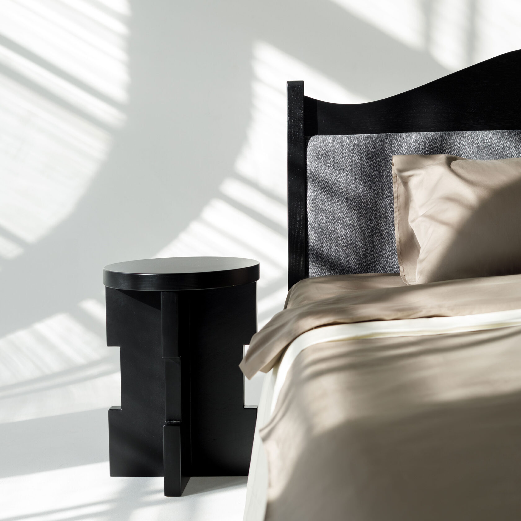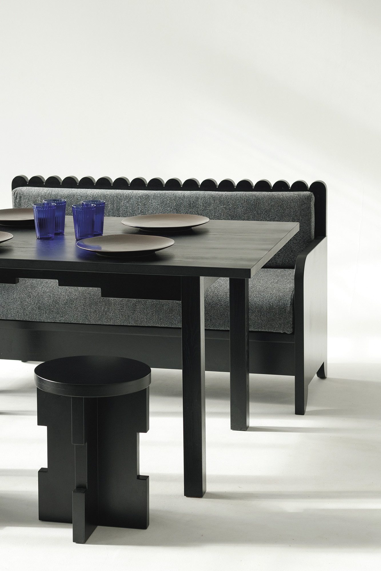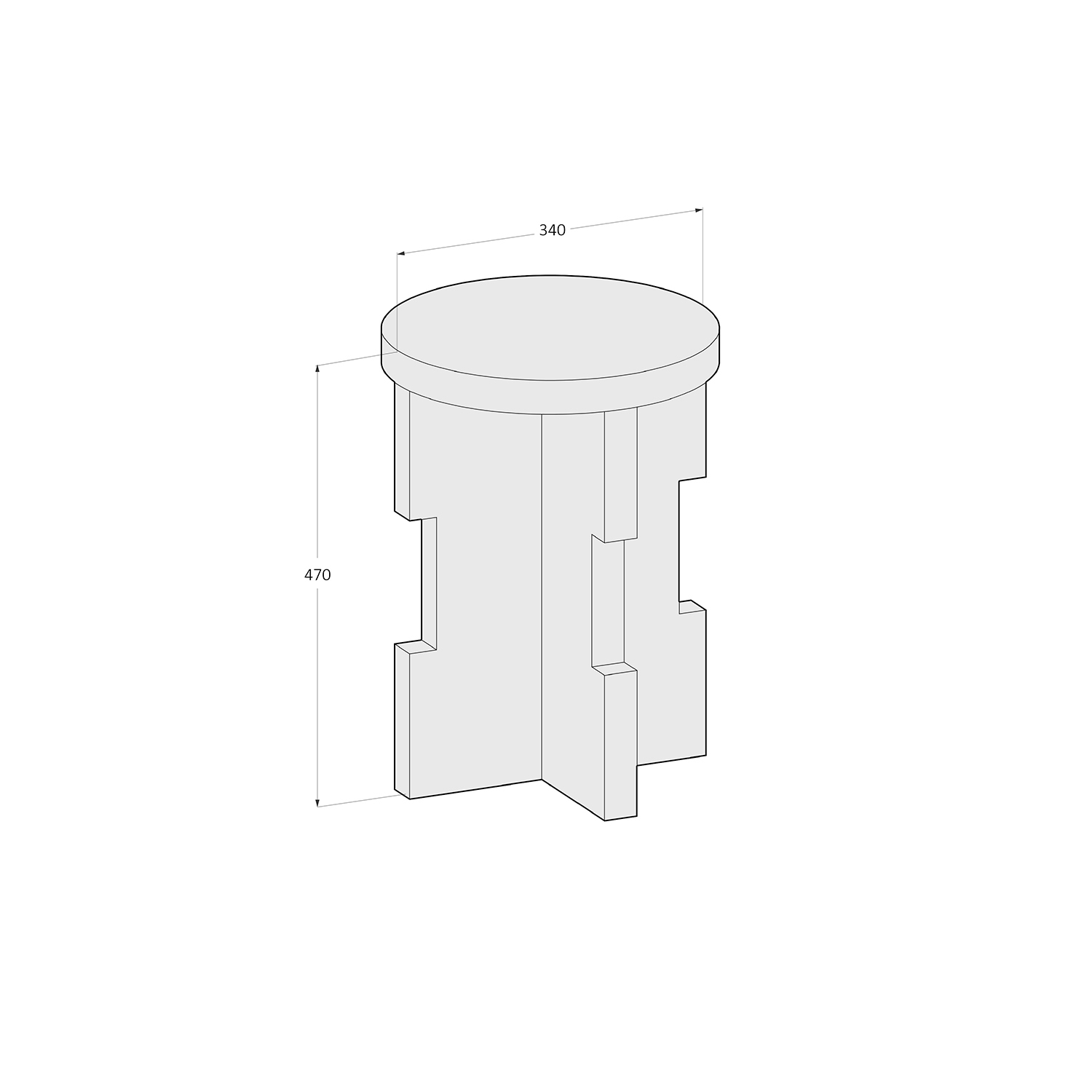 Декор табурета ЛЕМЕХ вдохновлён элементом, который использовался в русской деревянной архитектуре для покрытия крыш зданий и куполов храмов — лемех был разновидностью черепицы и имел, в том числе, и такую узнаваемую зубчатую форму.
