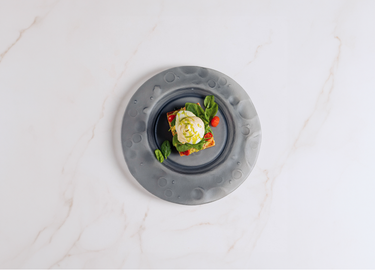 Лунная поверхность с ее произвольно образовавшимися кратерами — главная идея коллекции Luna. Тарелка создана для подачи рыбных блюд с гарниром, для сервировки десертов и мороженого.
