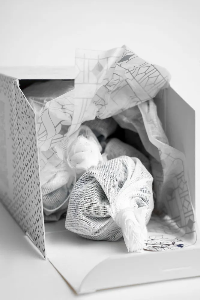 Чай в хлопковых мешочках для заваривания в чайнике.