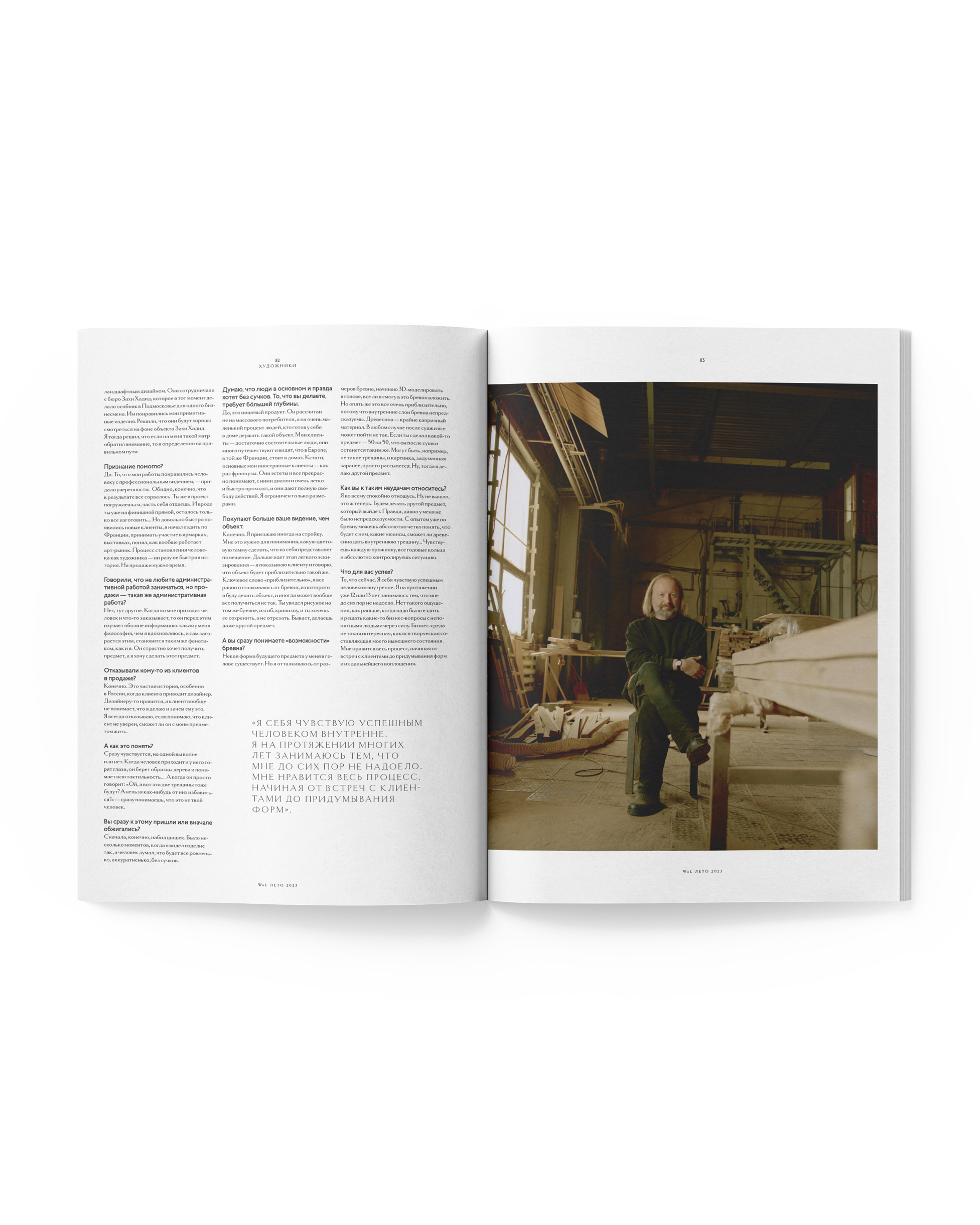 Во втором, летнем, номере WoL вас ждет большой разговор с креативным директором Дома творчества «Переделкино» Дарьей Бегловой, редкие кадры из мастерских дизайнера Дениса Милованова, художника Егора Плотникова и молодого и дерзкого дизайн-коллектива Fresh Glass. В разделе «Арт» вы найдете истории галеристки Алиной Пинской и основательницы галереи Booroom Ириной Будцевой-Винницкой. А в интерьерной секции — дом Даниила Берга, квартиру-студию Александры Рахимовой и впечатляющие проекты из Санкт-Петербурга и Новосибирска.
