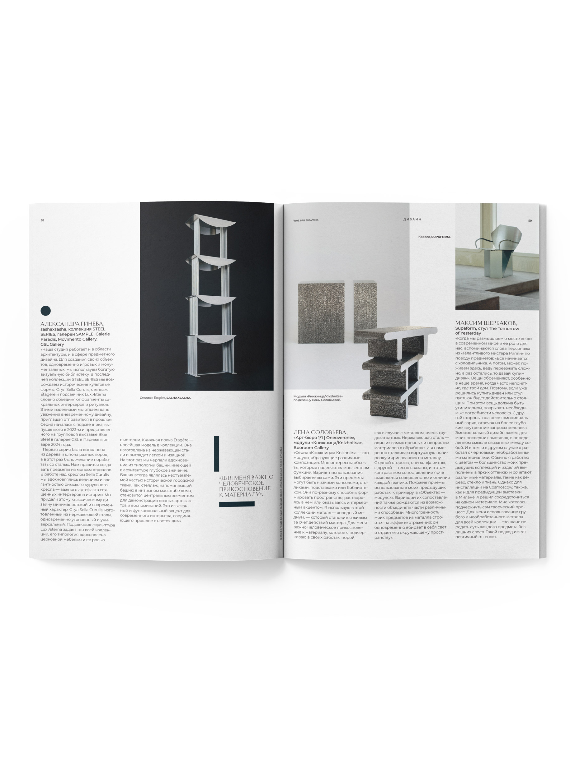 Читайте о самых ярких коллекционных предметах дизайна от российских дизайнеров и архитектурных бюро и вместе с нами изучайте культурные события со всего мира и безвизовые направления для отдыха. А в разделе «Интерьеры» смотрите новую квартиру семьи Ананьевых, уютный дом архитекторов Краузе, истории проектов Елены Горенштейн, Анастасии Комаровой и бюро OneOverOne.