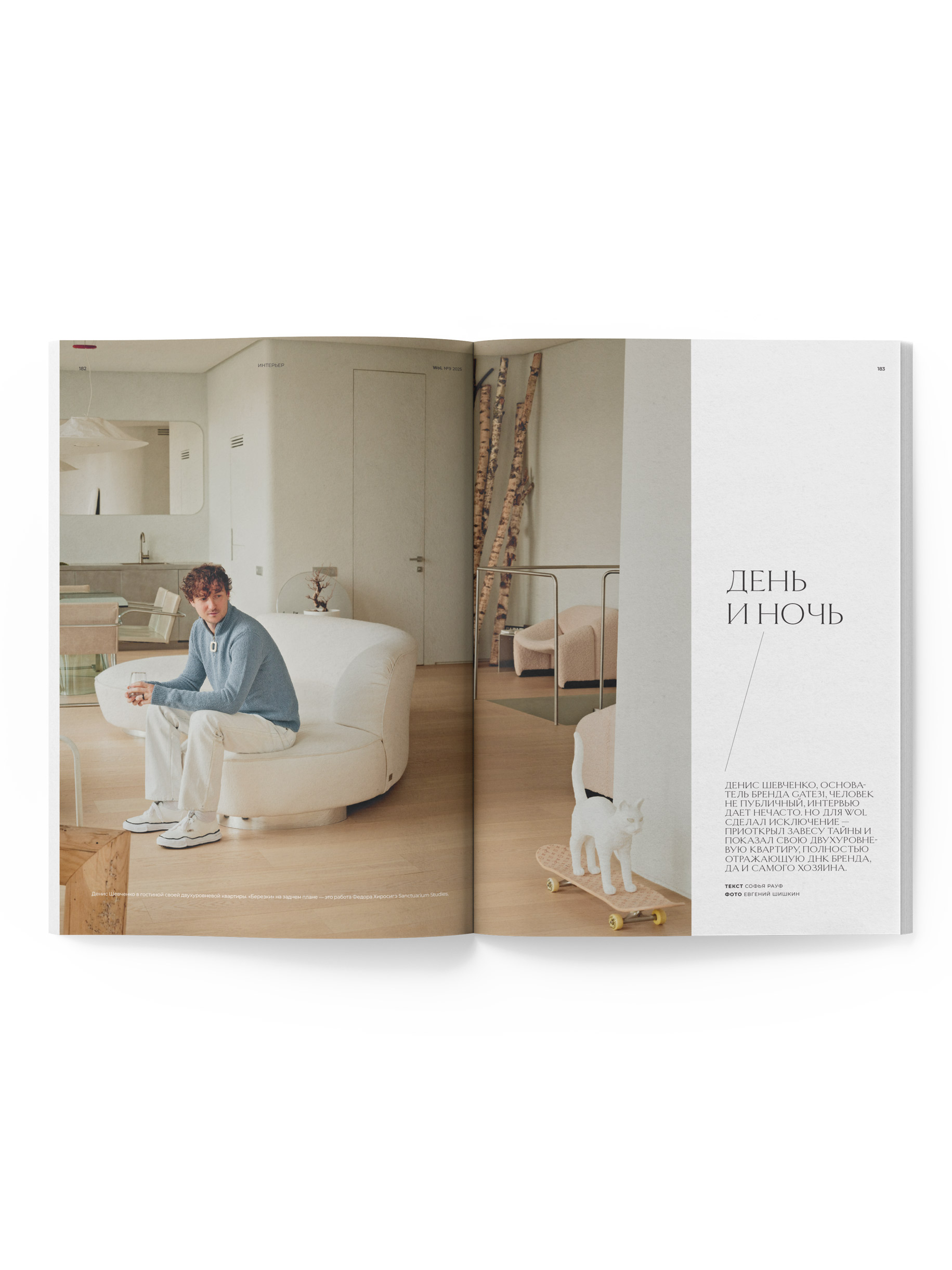 Все герои номера мыслят без границ — глобально. Они открывают новое не только для себя, но и людей вокруг. Читайте историю команды бюро Megabudka, интервью с Сергеем и Ольгой Поповыми, которые отмечают 20-летие своей галереи pop/off/art, а также рассказ про то, как создавалась детище Натальи Масловой — 3L Gallery. В разделе «Интерьеры» смотрите новый проект Евгения Нейманда в Петербурге, квартиру по дизайну Ани Манукян, кадр из которой украсил обложку, а также работы Константина Прокопенко, Suite Home Interiors, бюро Spinocchia Freund и кадры из дома основателя бренда GATE31 Дениса Шевченко.