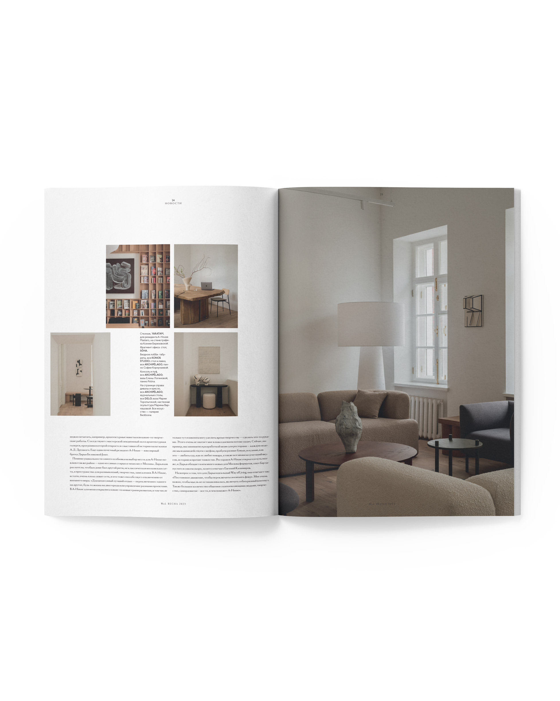 А также: поймали основателя «Собран в саду» Антона Шуранова за работой и расспросили о его искреннем подходе к бизнесу, рассказали о новой архитектурной точке притяжении Москвы — центре конструктивизма «Зотов» и целый блок первого номера посвятили небольшим, но очень активным галереям, продающим винтажные предметы декора.