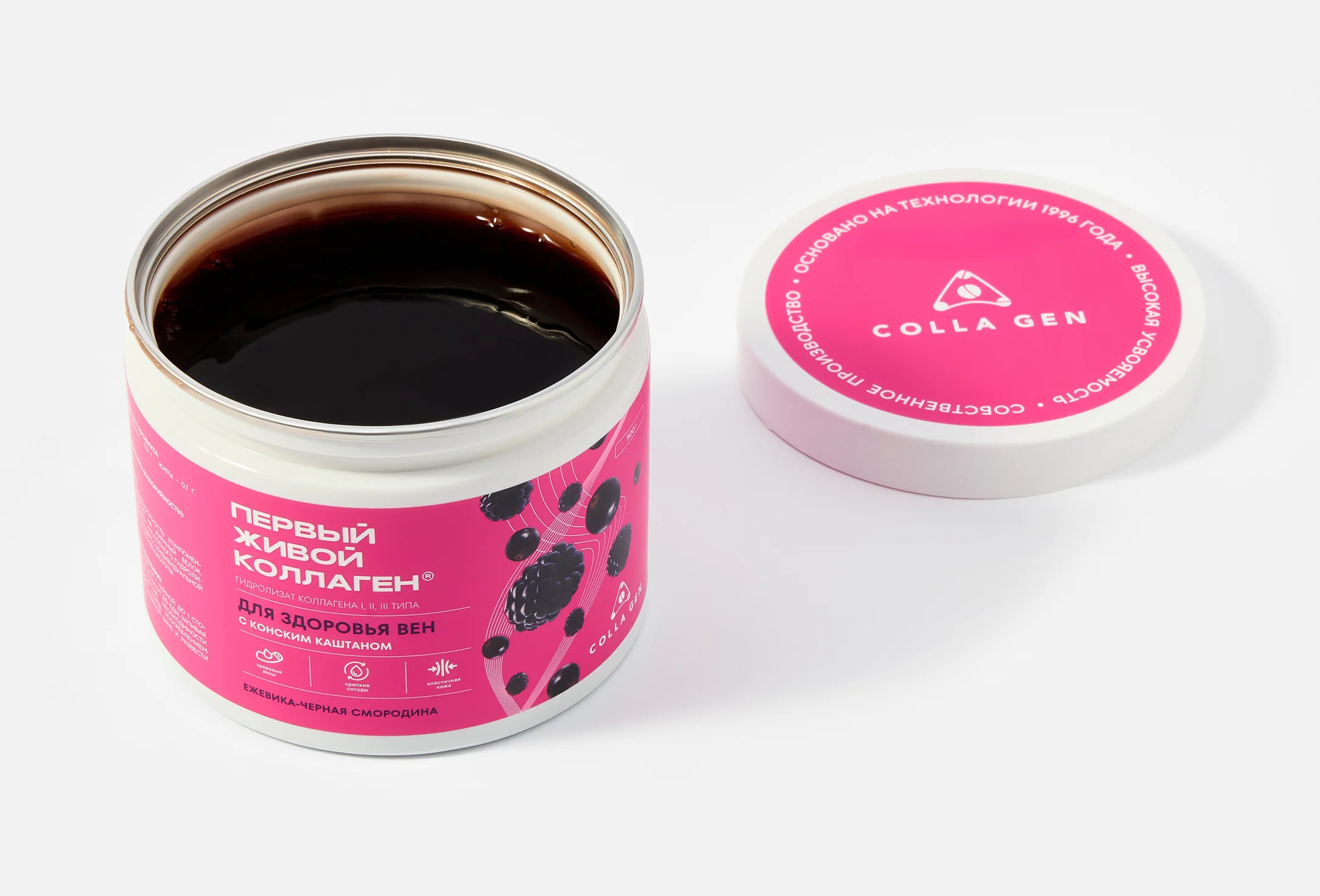 Живой коллаген с конским каштаном, соком черной смородины и ежевики.